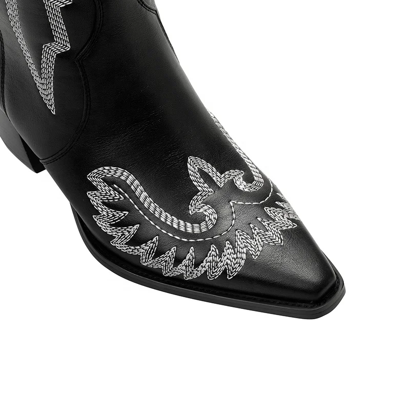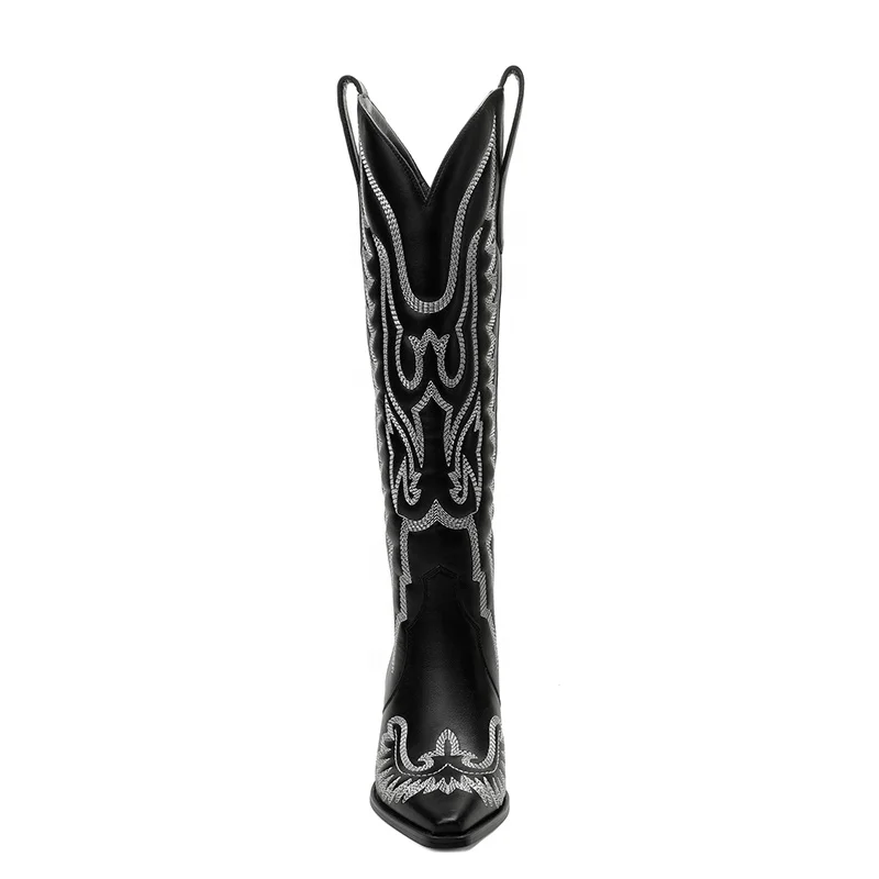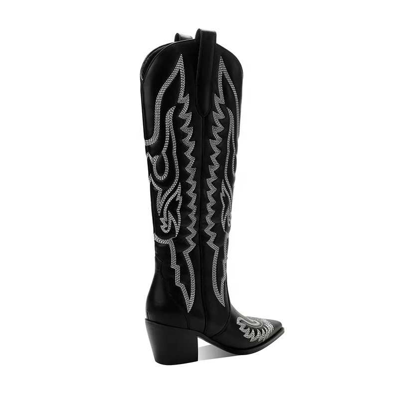 Women's Black Cowboy Cowgirl Boots Pointed Toe Knee-High Western Rodeo with 6cm Chunky Heel All Seasons PU Upper