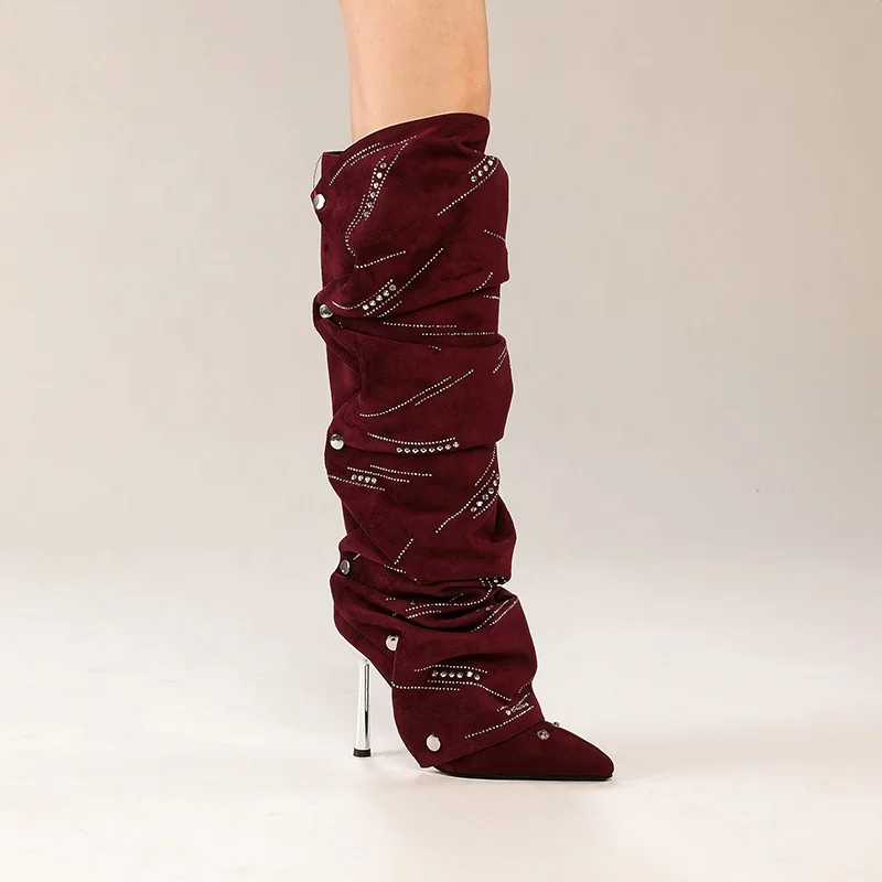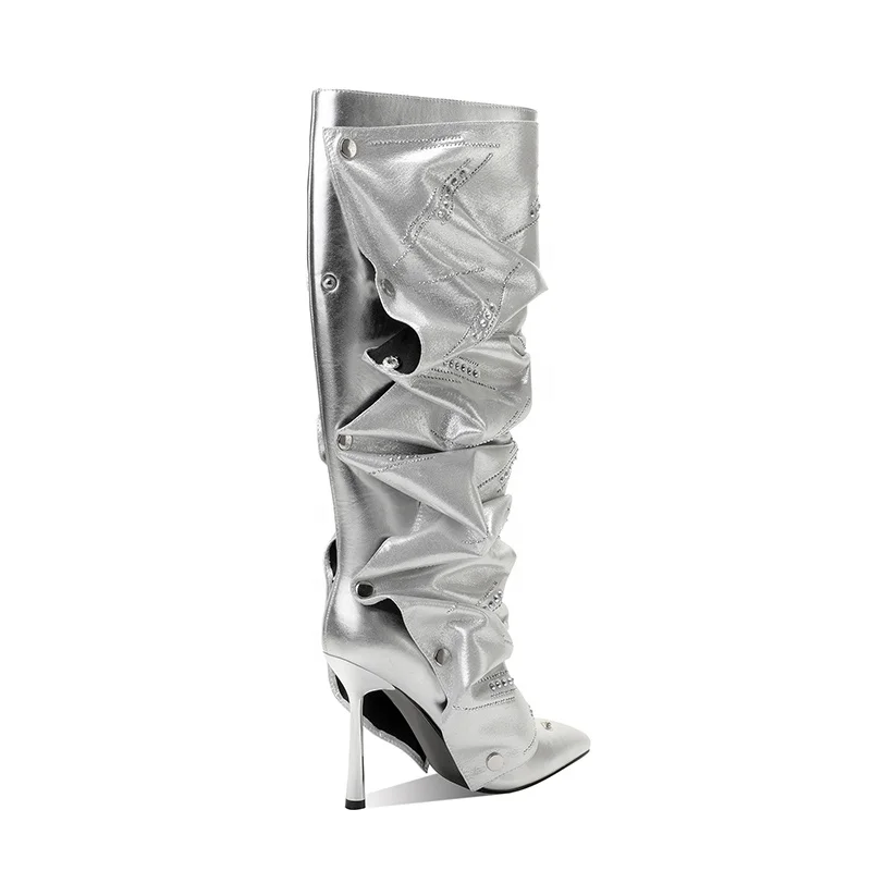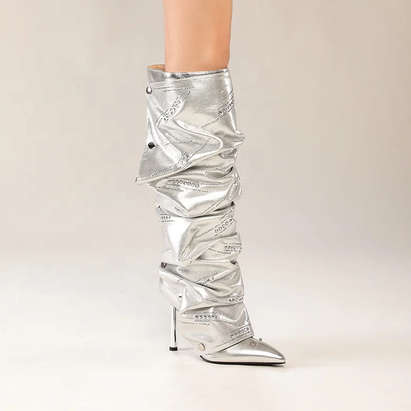 Detachable Snap-Button Metallic Slouch Boots Two-Way Wear Knee-High