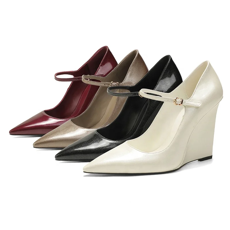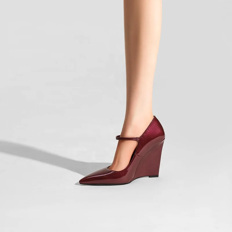 Custom Glossy Wedge Heels Pointed Toe Mary Jane Pumps for Women | OEM/ODM Dress Shoes Manufacturer