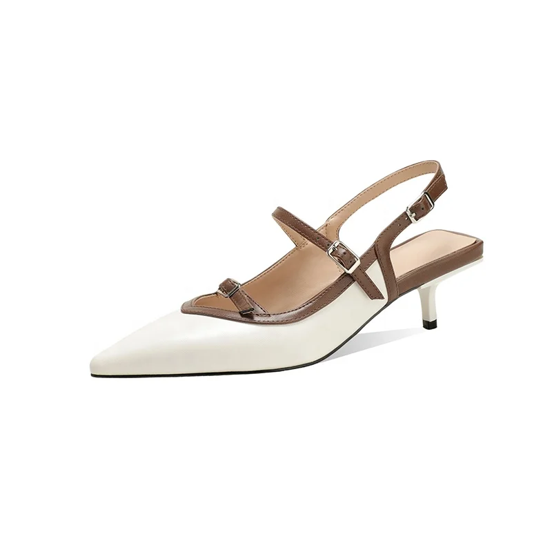 Moncheer Women's Pointed Toe Slingback Kitten Heel Shoes with Kitten Heel for Everyday Wear Comfortable Heels