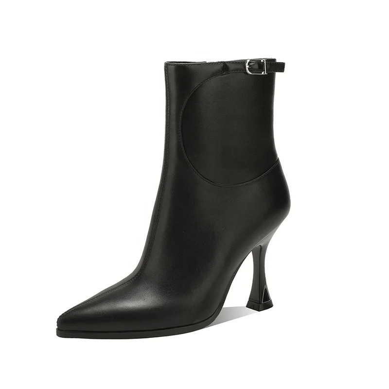Moncheer Women's Pointed Toe Stiletto Ankle Boots with Adjustable Buckle Strap | Sleek Slim-heel Dress Boot