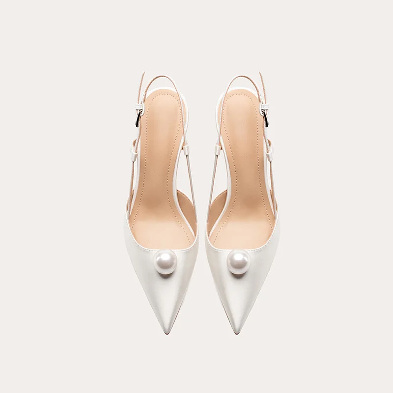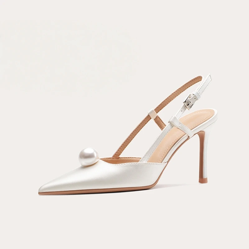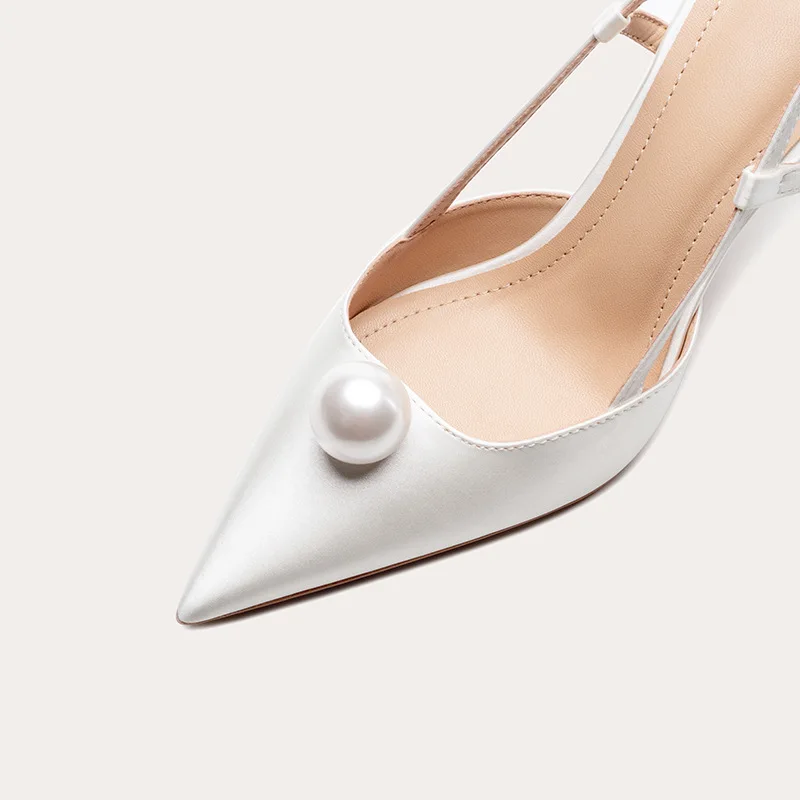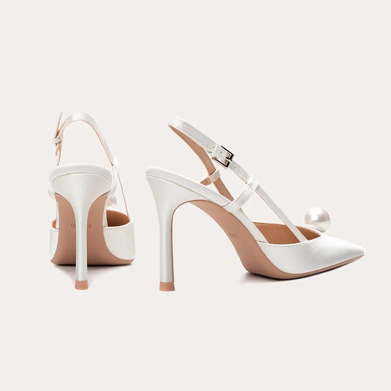 ODM OEM Heel Wed Shoe for Bride Woman High Heel White Pearl Pointed Toe Summer Sandals for Wedding and Party Wear