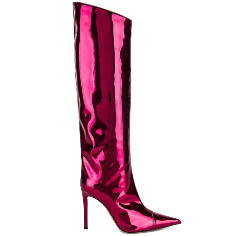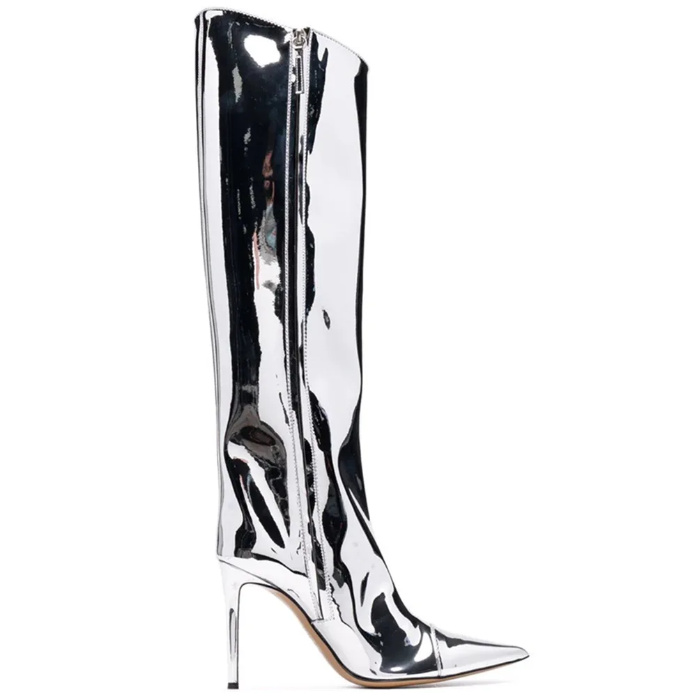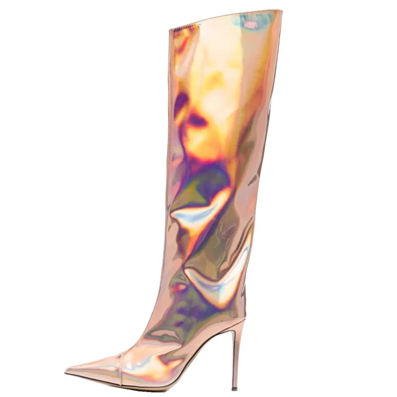 2021 New Fashion Show Autumn Winter Sequined Breathable ZIP Closure Super High Heel High-Heeled Pointed Toe Knee-High Foreign