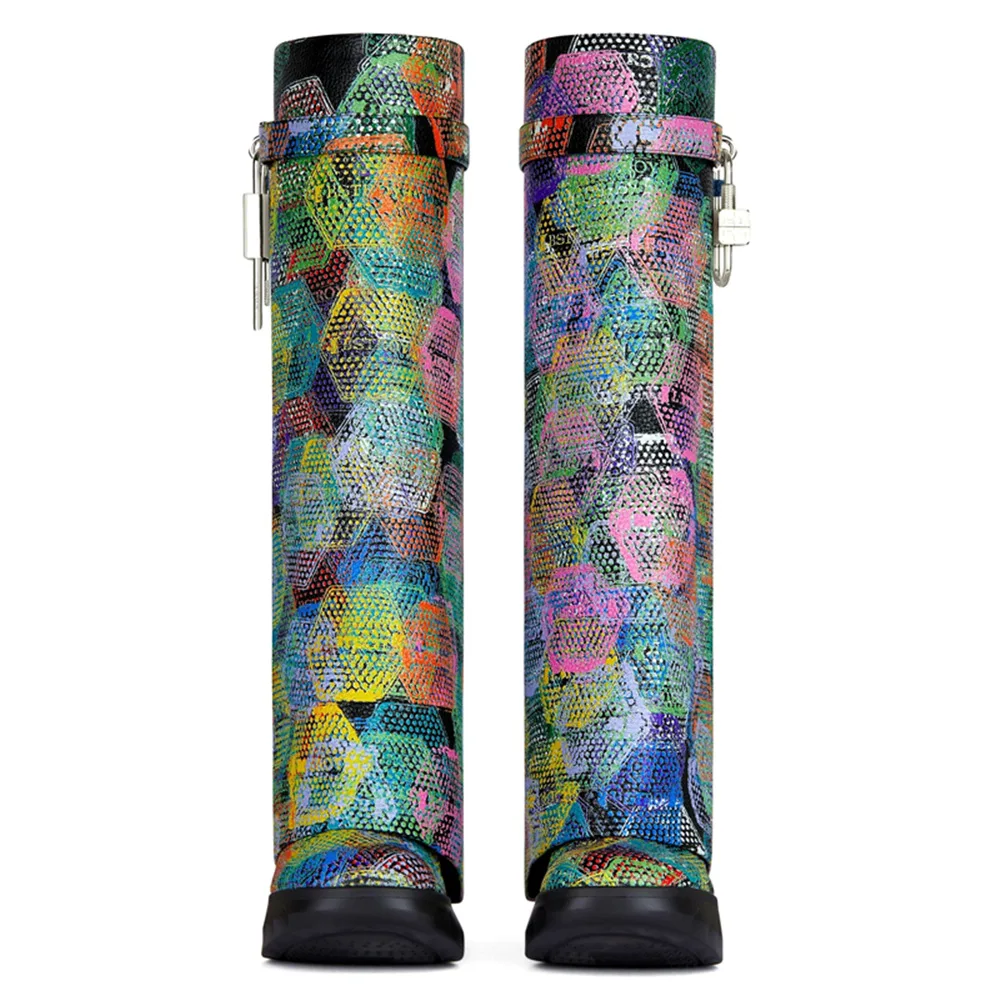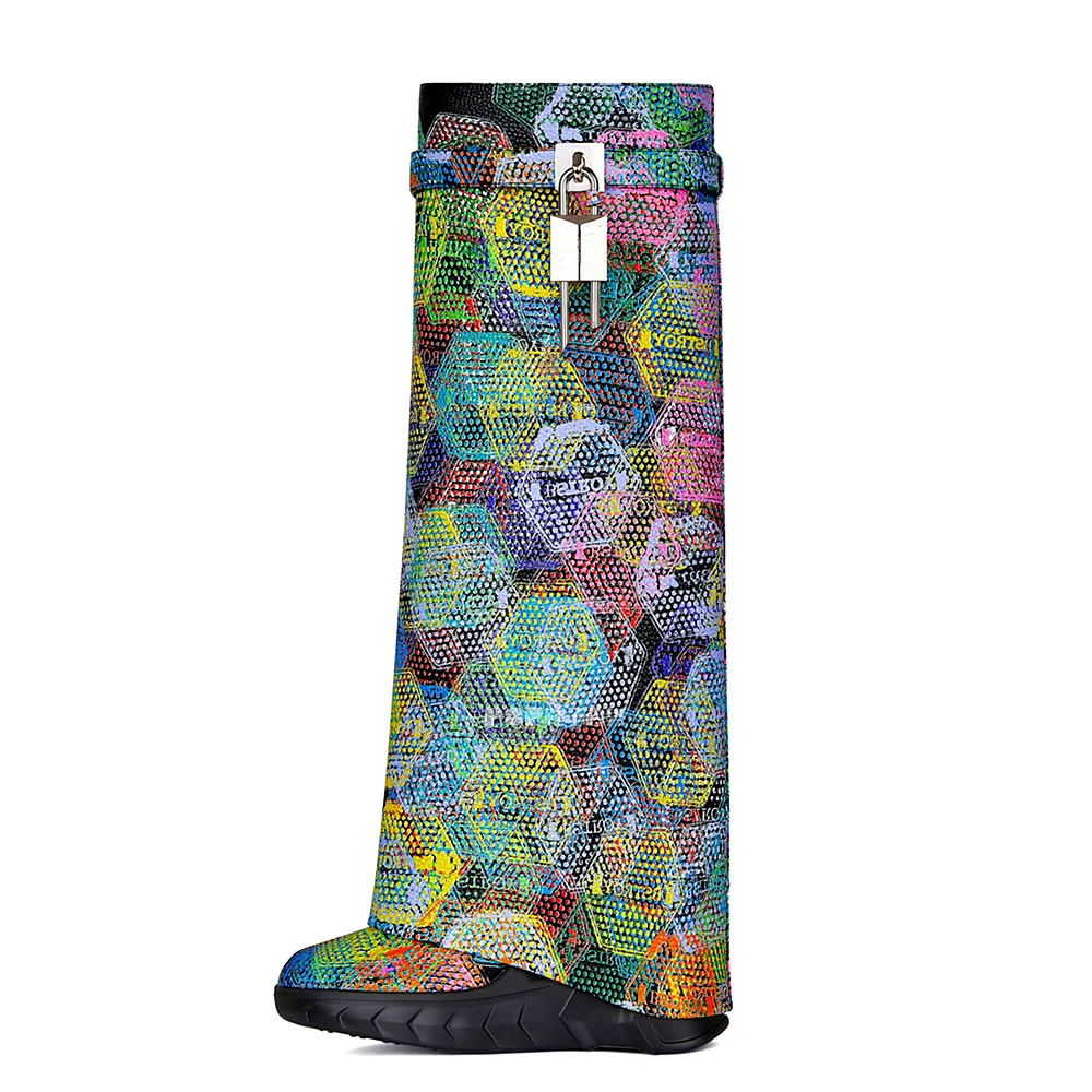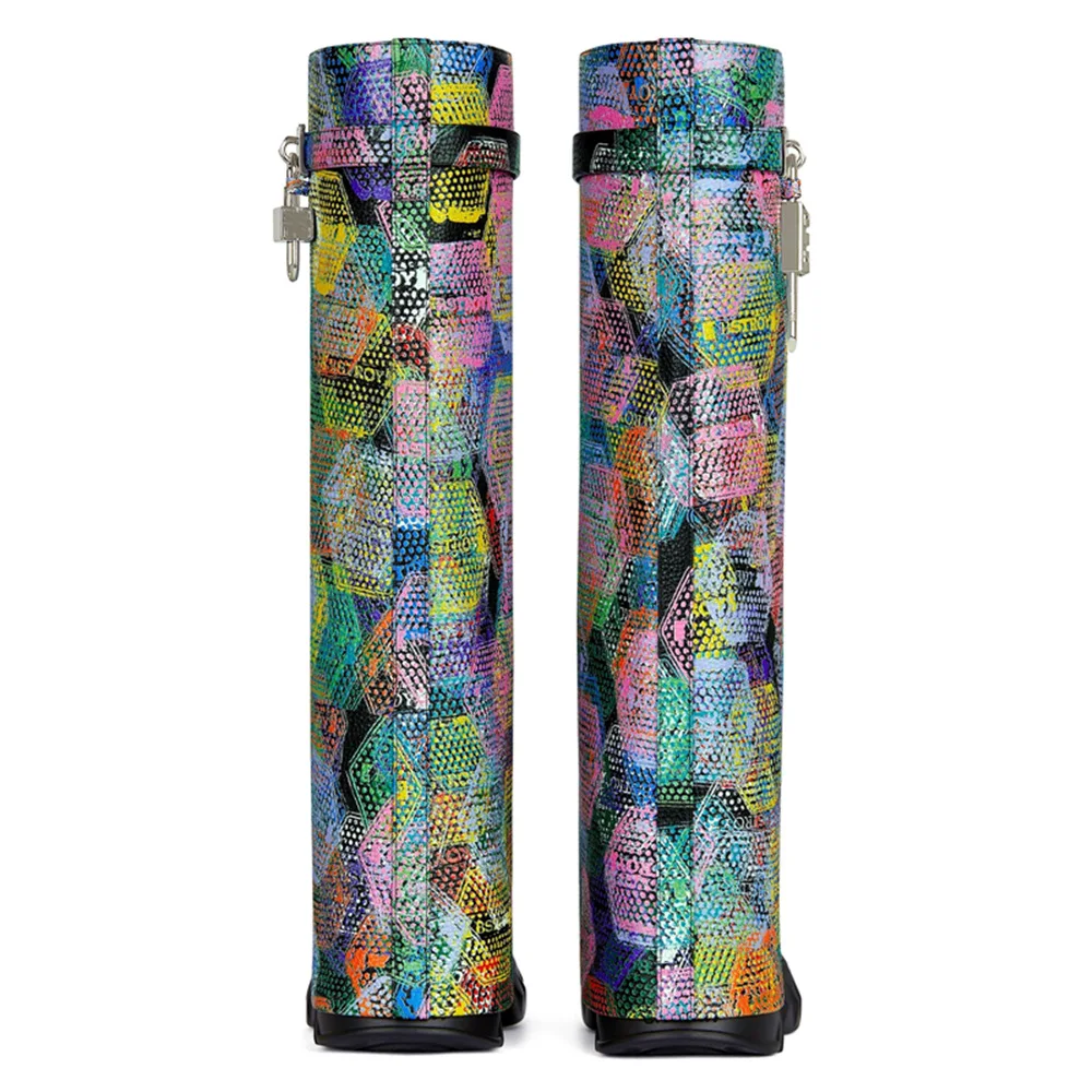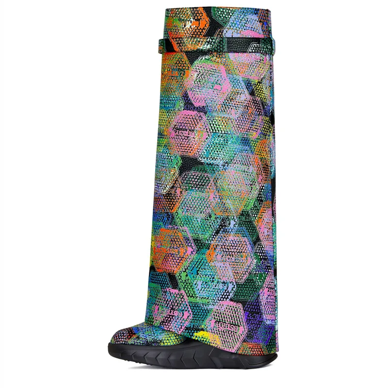 2023 Wedge Heel Chelsea Boots Zip Closure Thick Sole Super High Heel Leopard Print Ankle & Bootie Denim Boots Women