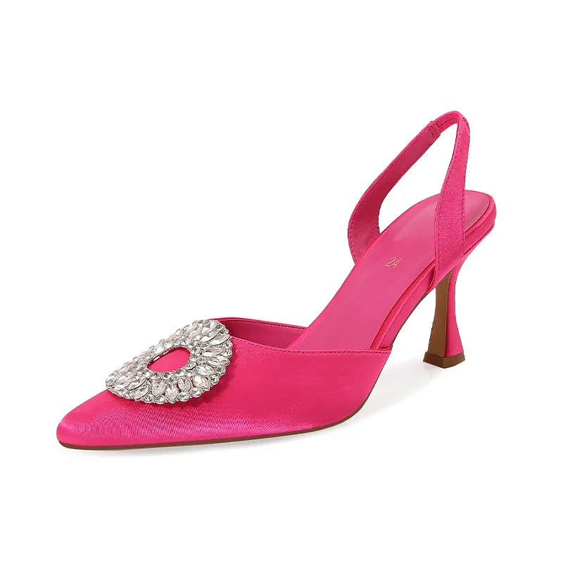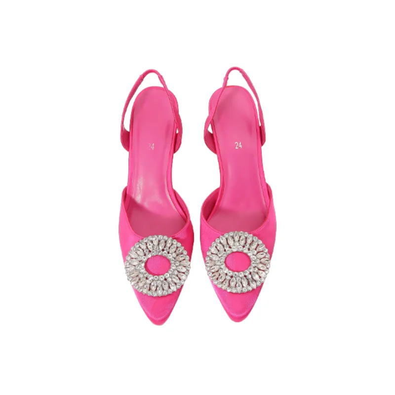 ODM OEM Women Slingback High Heel Sandals Pointed Toe Shallow Mouth Crystal Buckle Spring New Elegant Party and Office Shoes