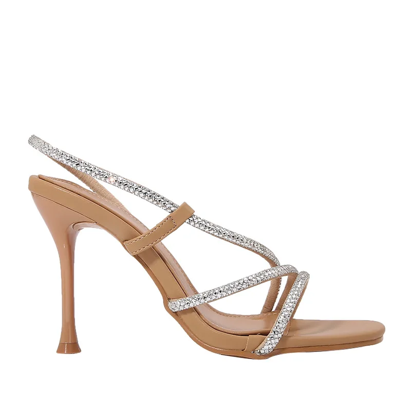 OEM ODM Custom logo Elegant Women's Stiletto Heel Sandals Open Toe Back Strap Pull Strap Fashionable Rhinestone Decorated Summer