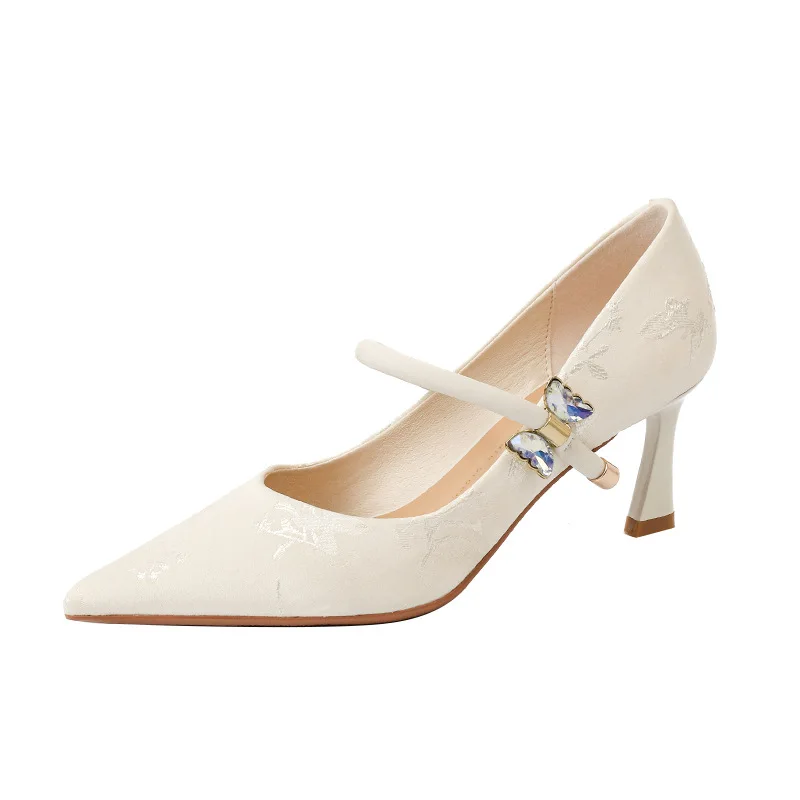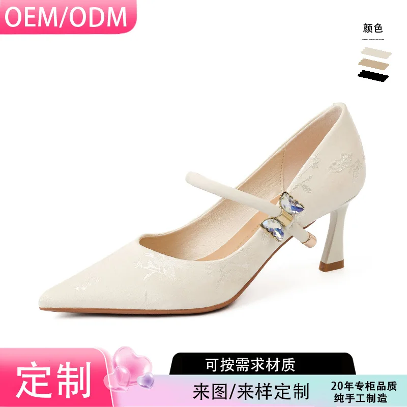 Cross-Border Custom High Heels for Women Factory Direct Thin Sheepskin Embroidery Cheongsam Word Belt Winter Season Model 3358-5
