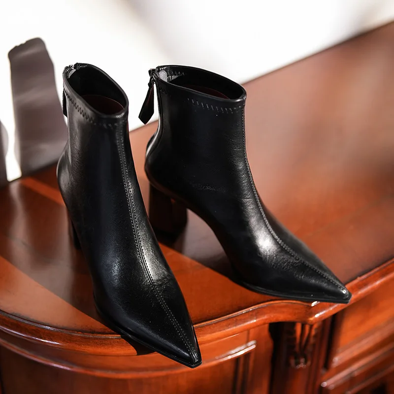 Women's Waterproof Breathable Fashionable Summer Autumn Spring Hard-Wearing PU Upper High Heels with Pointed Toe Trendy Styles