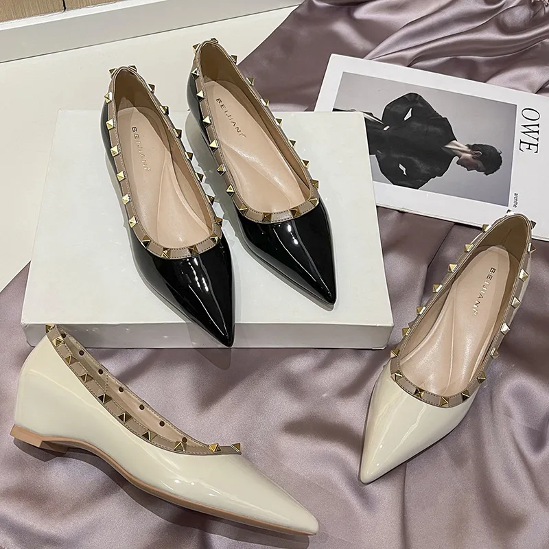 Bejani 6318-7 European American Style High-End Rivet Small Height-Increasing Strapless Slip-On Wedge Heel Pointed Flat Bottom
