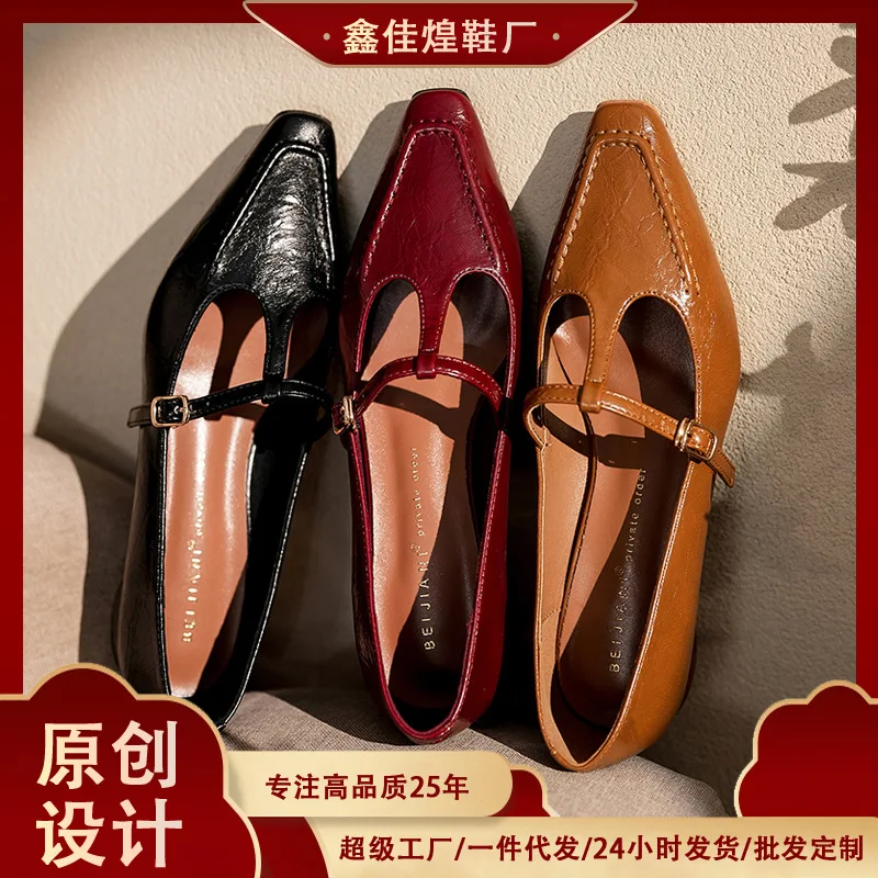 7318-33 French Retro T-Buckle Belt Mary Jane Shoes Women's Flat Thick Heel Low Heel Autumn Mixed Colors