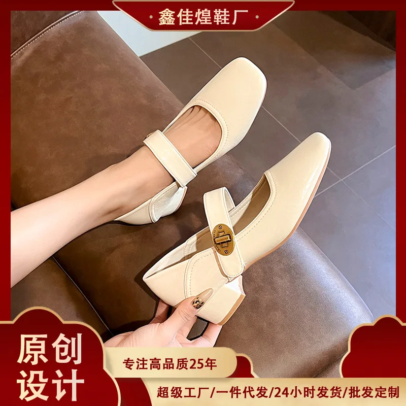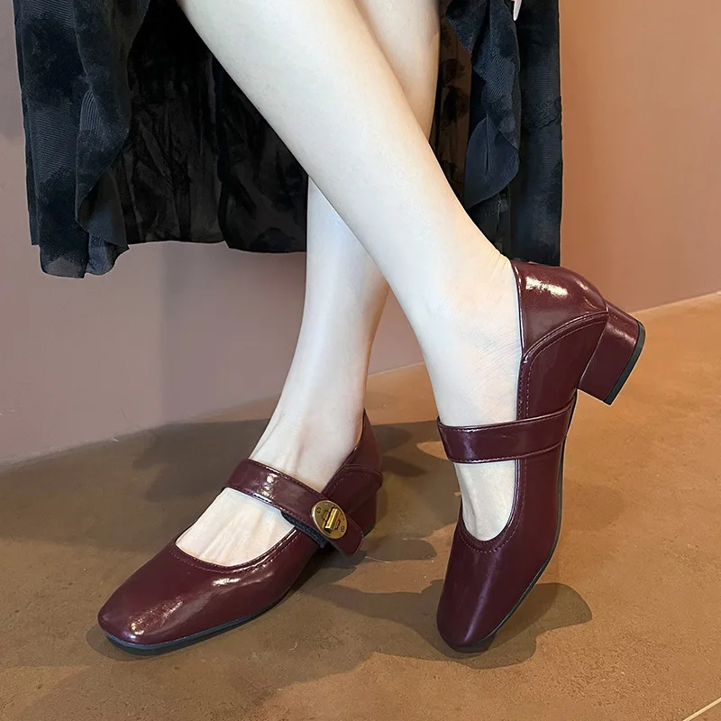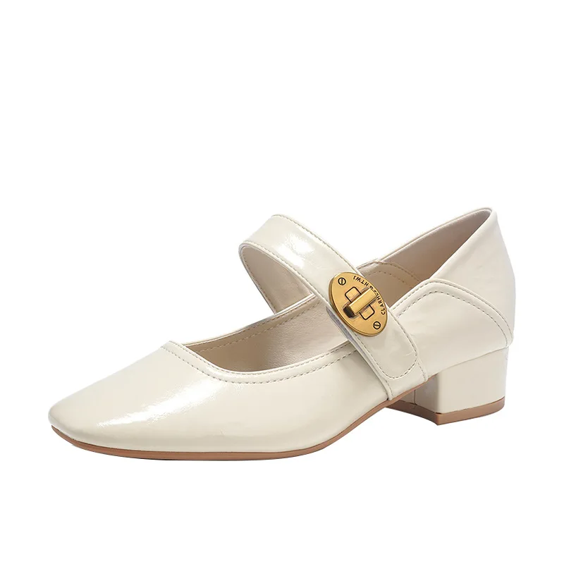 Bejani 1389-1 Women's French Thick Heel Mary Jane Shoes Soft Face Wearable Both Sides Genuine Leather Upper Rubber Outsole