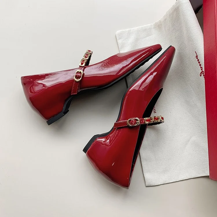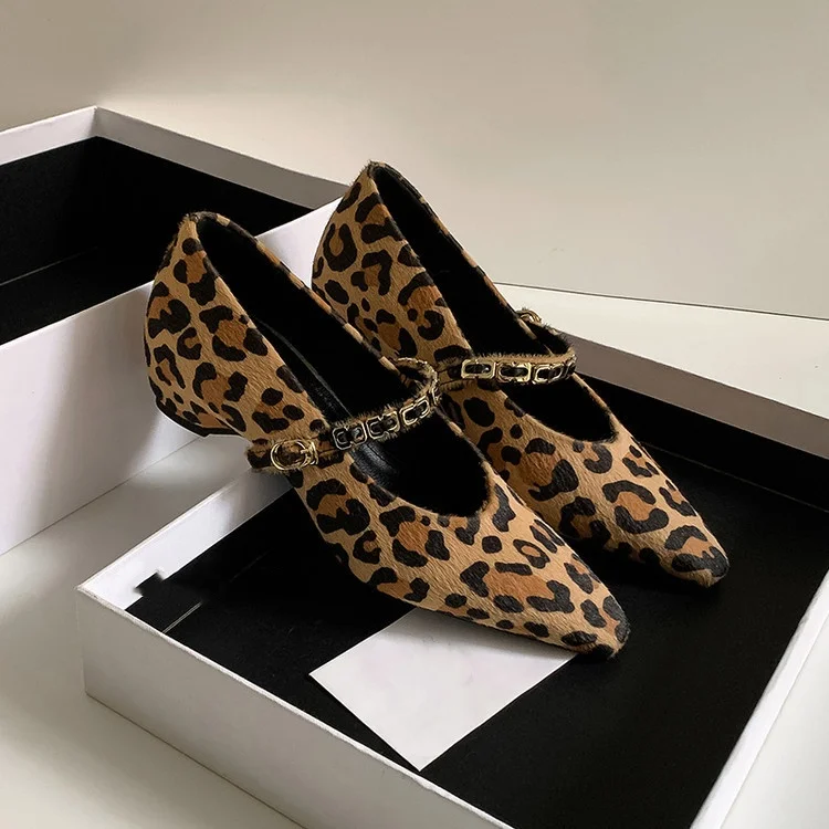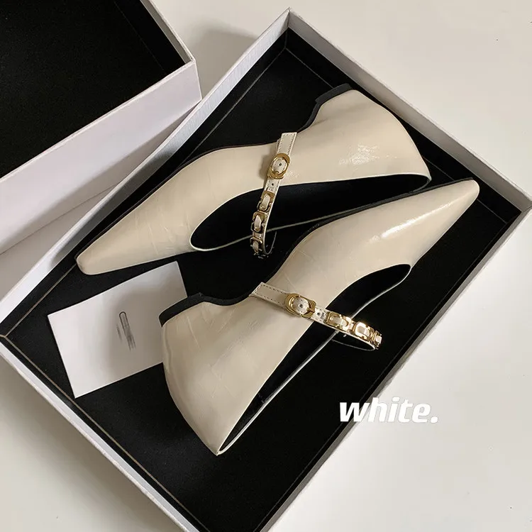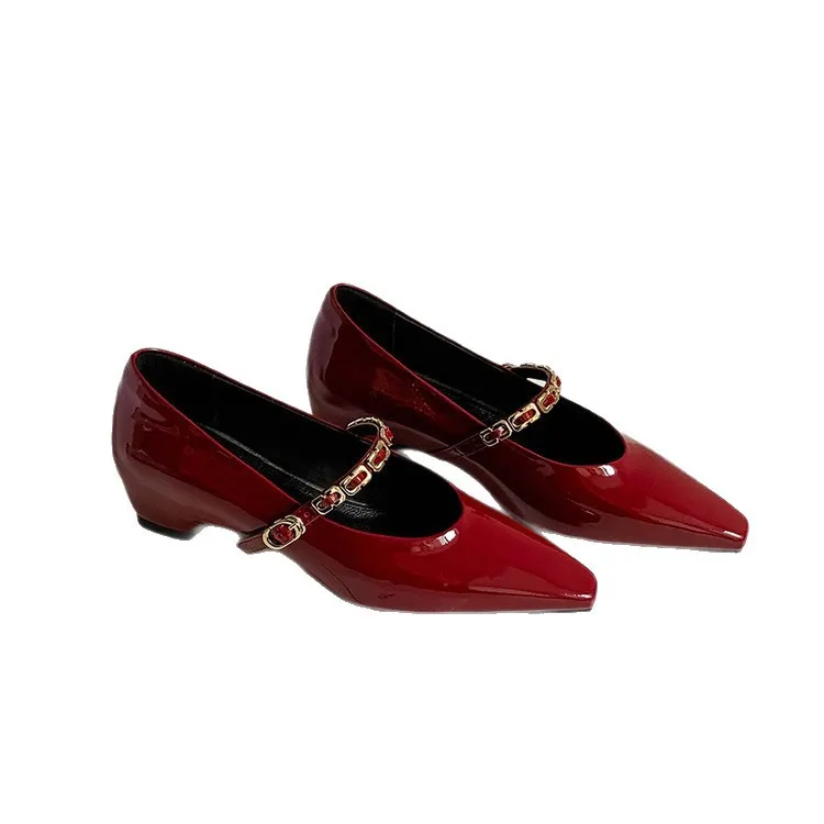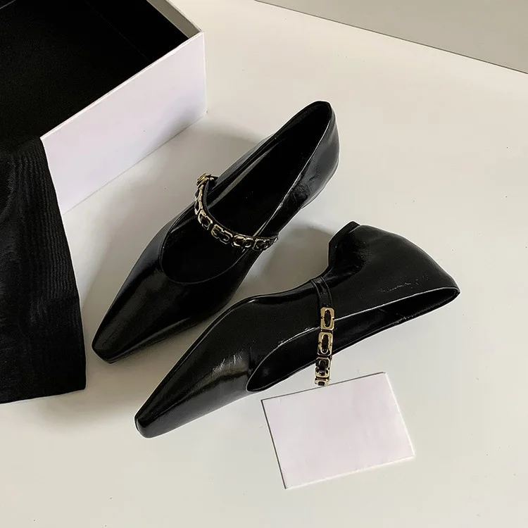 Fashion Women's Classic Mary Jane Shoes with Gold Chain Strap Low Heel Pointed Toe Dress Shoes for Ladies Office Party Wholesale