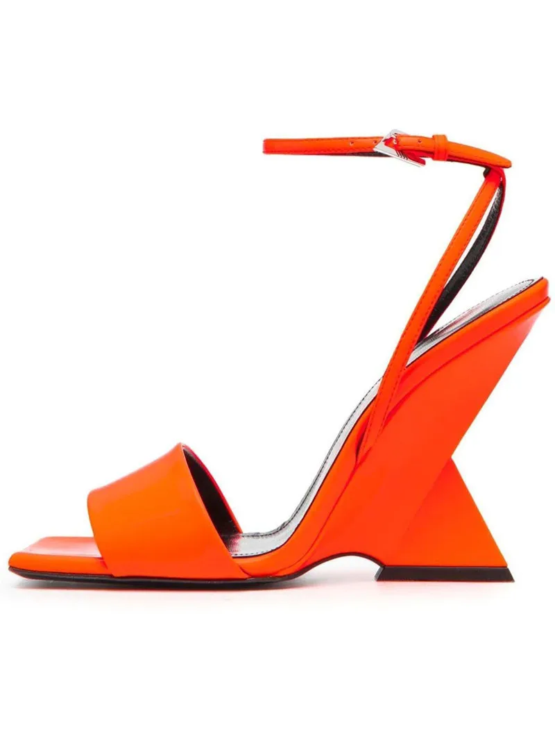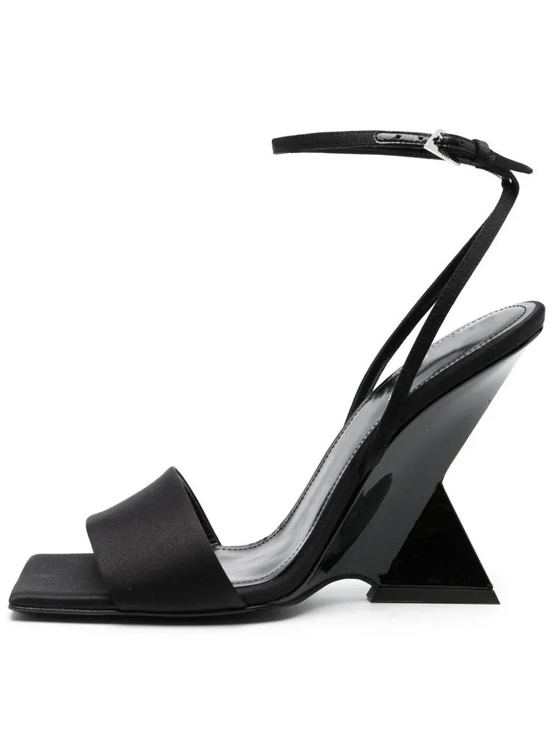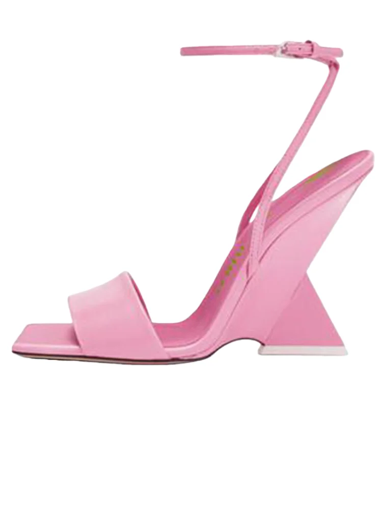 Fashion Women's Mesh Outdoor Sandals with Ankle Strap Unique Geometric Heel Square Toe Summer Party Shoes Ladies Wholesale