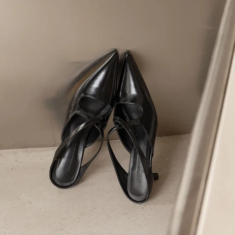 Fashion Women's Pointed Toe Mules Cross Strap Design Super High Heel Mesh Upper Rubber Outsole Summer Dress Shoes Office Party