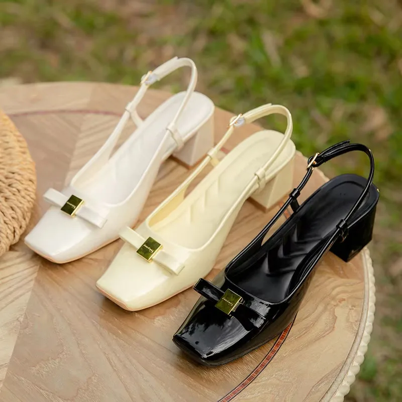 Custom Design High Heel Flat Sandals Ladies Fashion Trend French Style Closed Toe Patent Leather Shoes Summer Casual Work Party
