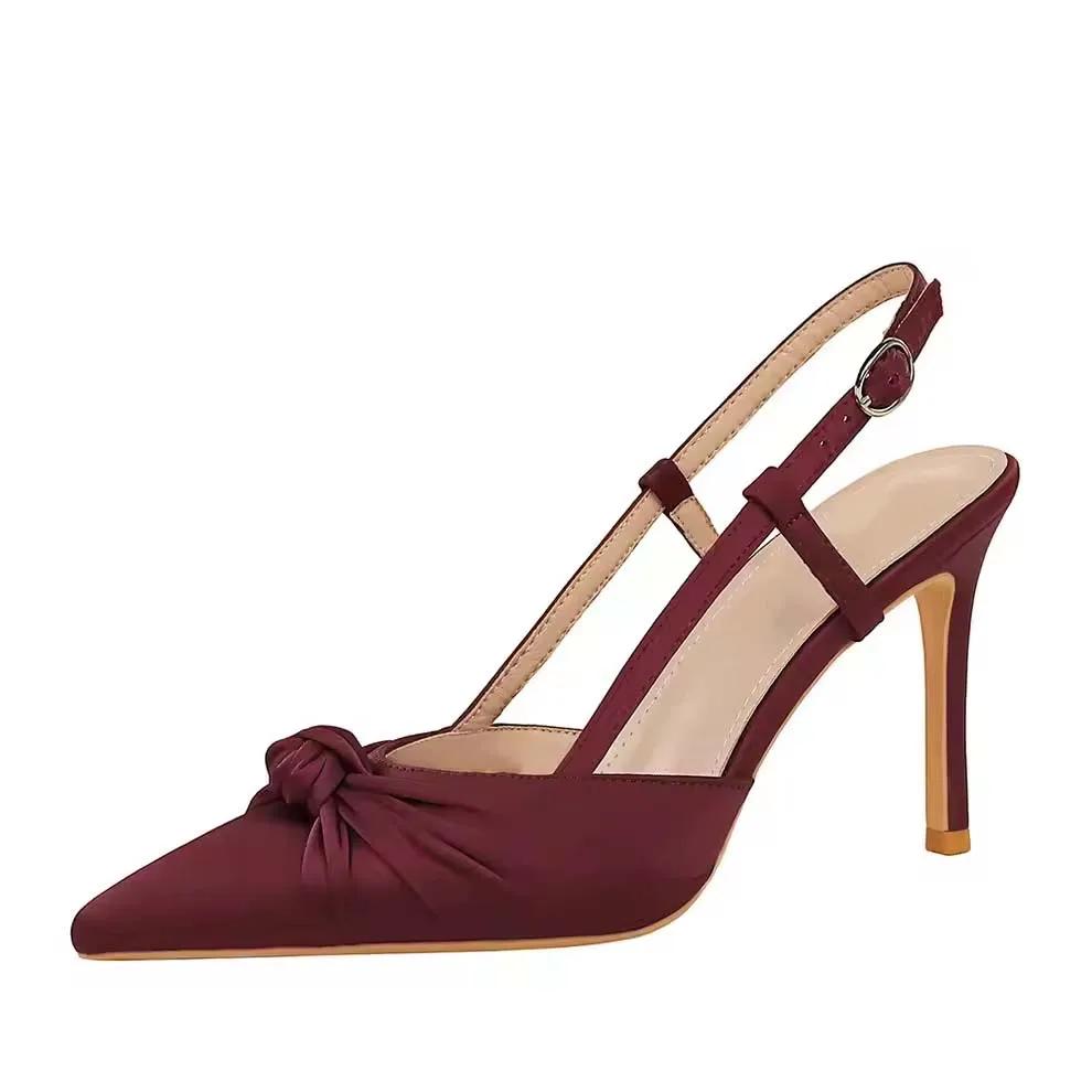 Women's Summer Outdoor Satin High Heel Sandals 9cm Thin Heel Pointed Toe Buckle Strap Closure for Elegant Backless Party Style