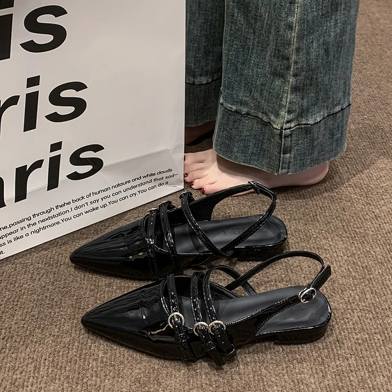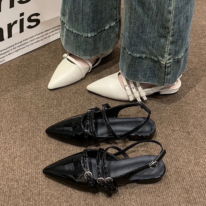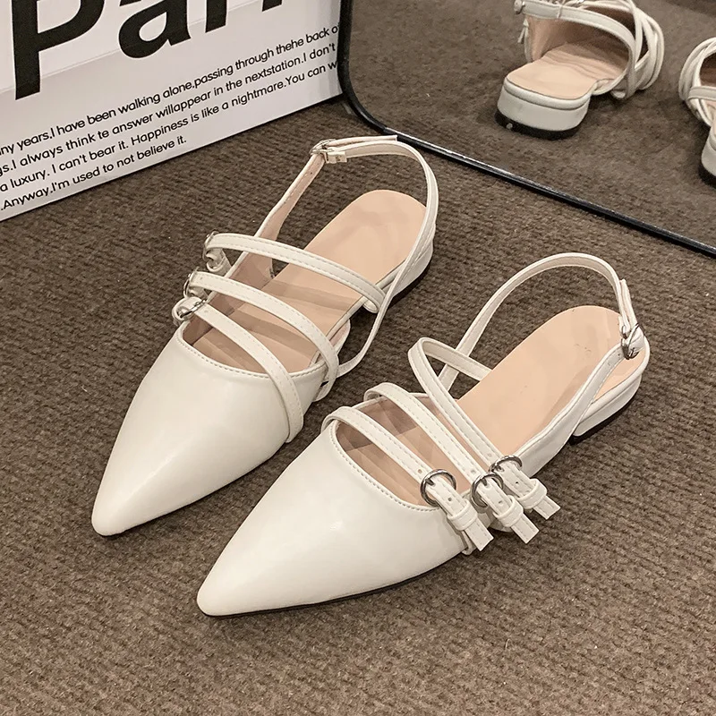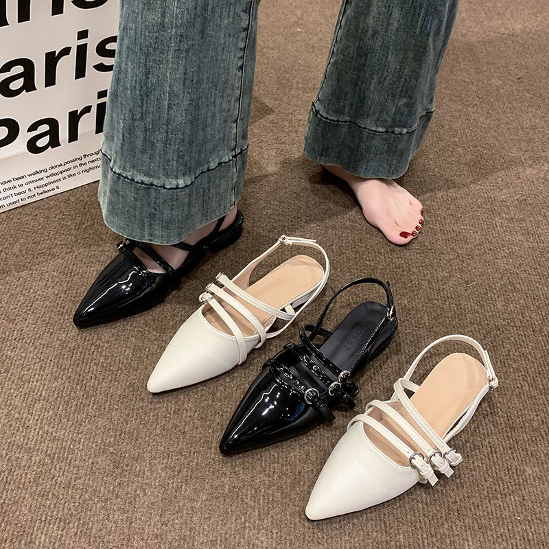 QuiteS 2026 New Summer High-Top Commuter Style Pointed Toe Slip-On Closure Hollow Back Design Sandals Elegant Shoes for Women