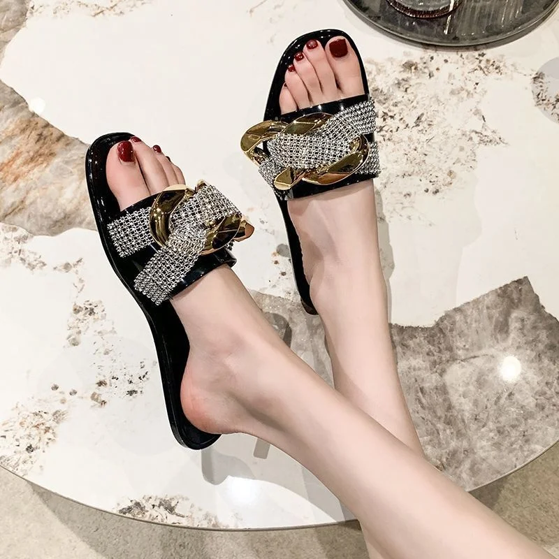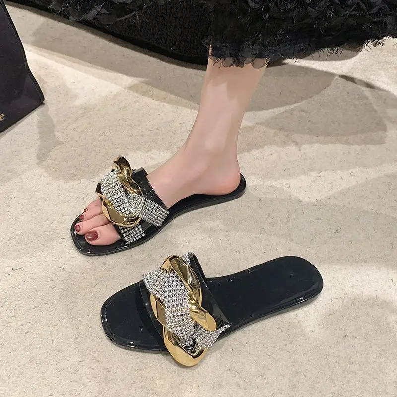 QuiteS 2026 Women's Summer Flat Shoes Non-Slip One-Strap Platform Beach Slippers Casual Fashionable Design Slip-On Closure