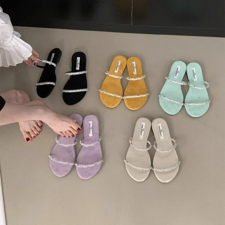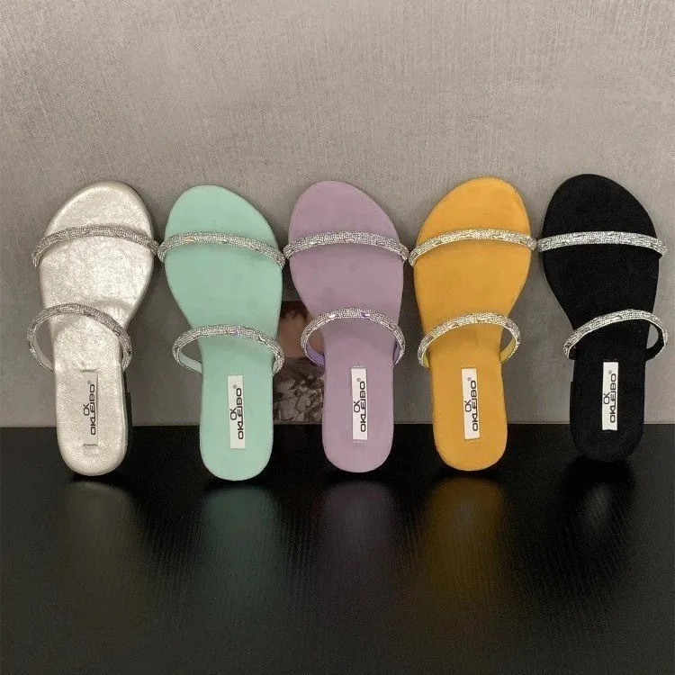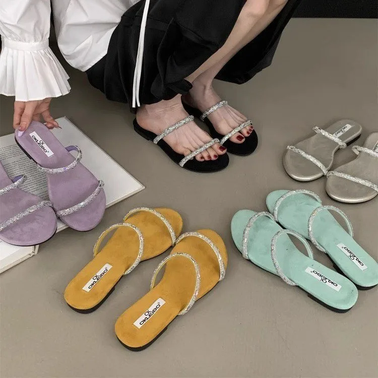 QuiteS 2026 Women's Summer Flat Sandals New Style French Rhinestone Closure Sexy Casual Fashion Shoes