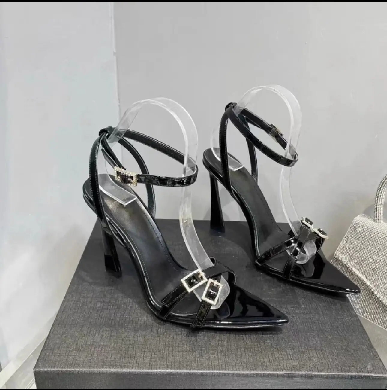 QuiteS Red Heel New Summer Open Toe Rhinester One-Line Buckle With Patent Leather Mature Women Sexy High Heels
