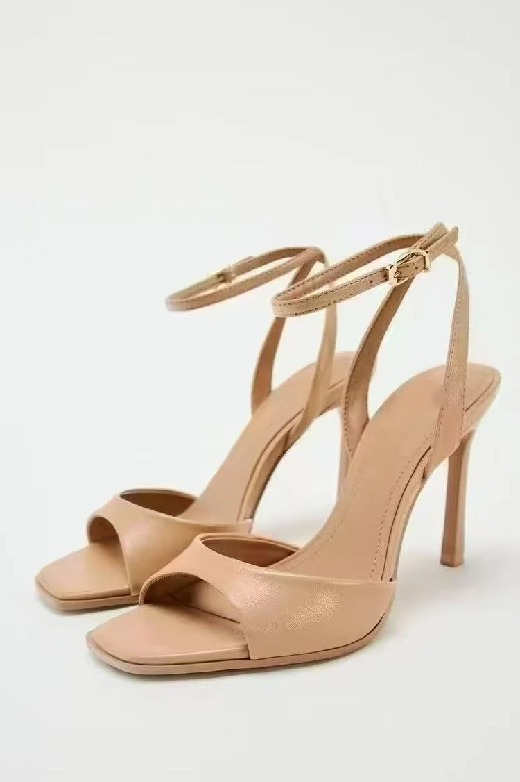 QuiteS 2026 Summer Collection Hot Selling Elegant Luxury Women's High Heels Sandals Thin Heeled Ankle Strap Open Toe Square Toe