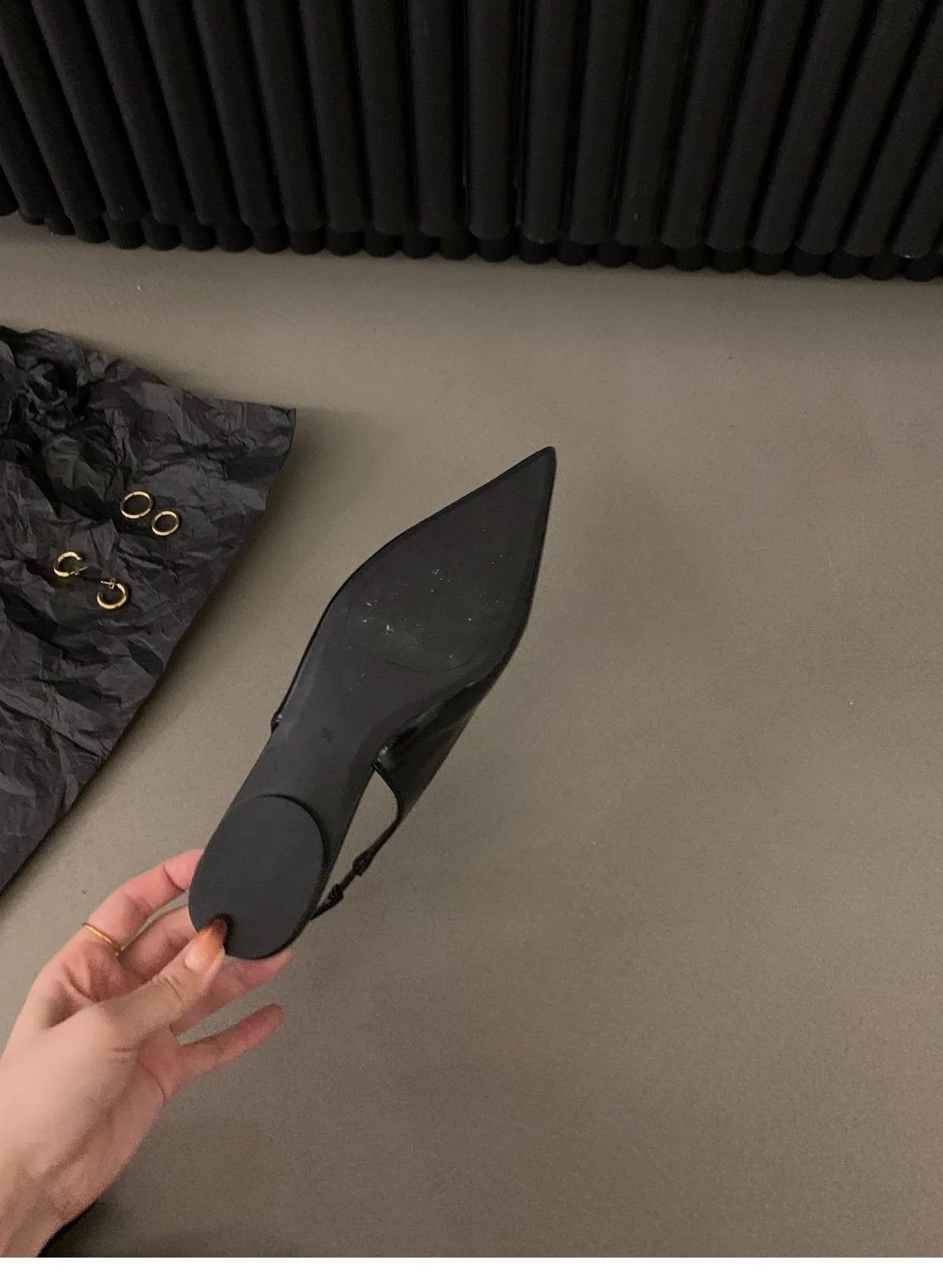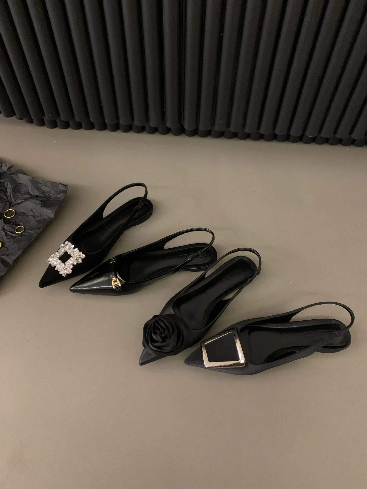 QuiteS French Flat Black Sandals Ladies Sandals New Design Latest Spring Pointy Rhinestone Temperament Single Shoes