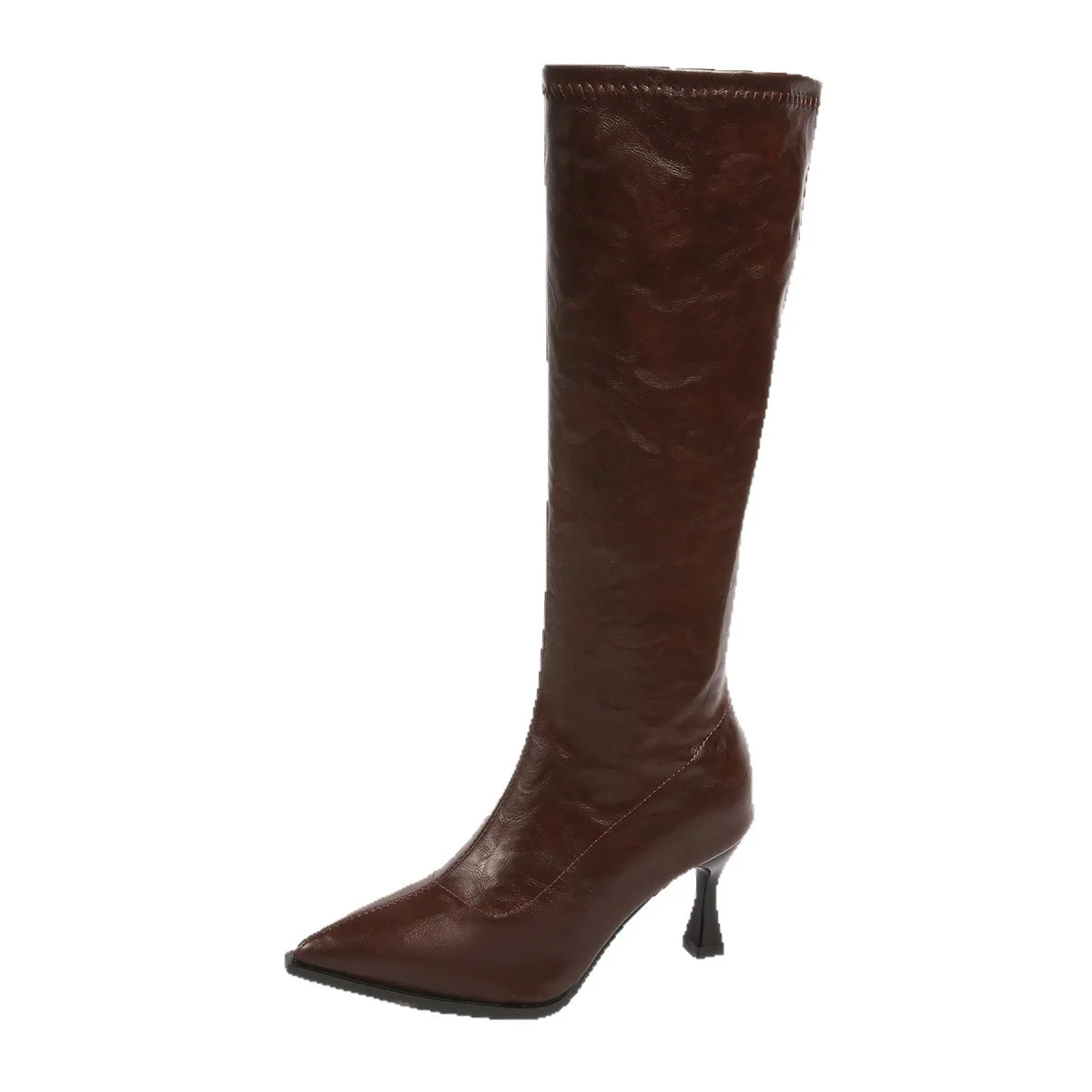QuiteS 2026 Winter Autumn New Plus Size Pointed-Toe Side-Zip Knee-High Boots Casual Sexy Stiletto Heel Shoes for Women