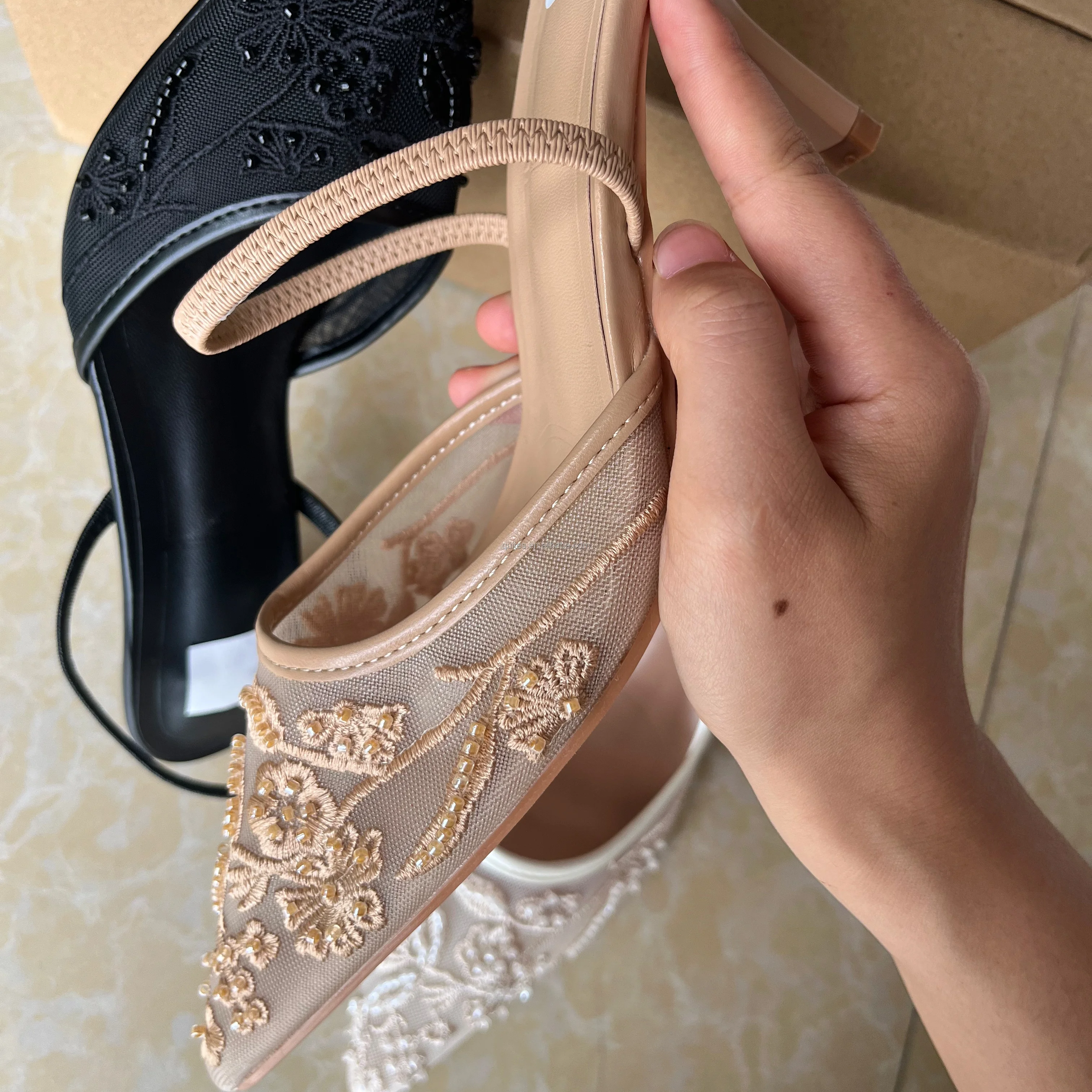 Women's Fashionable Summer Lace Plush Breathable Design Stiletto Heel Pointed Toe Trendy Styles Sold Directly Source Factory