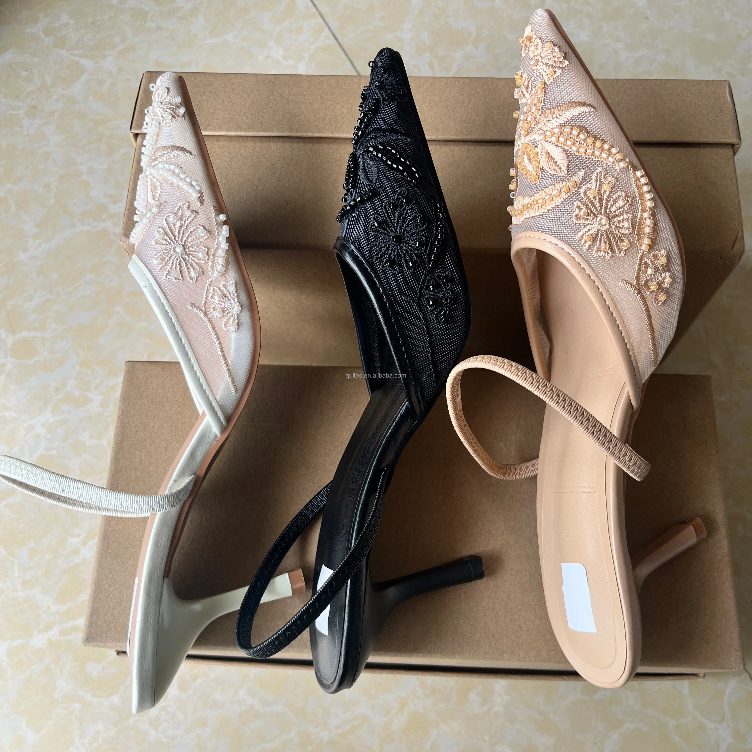 QuiteS 2026 QuiteS Summer Luxurious Wedding High Heels Pointed Toe Slip-On PU Insole Sandals Cap Sexy Sandals