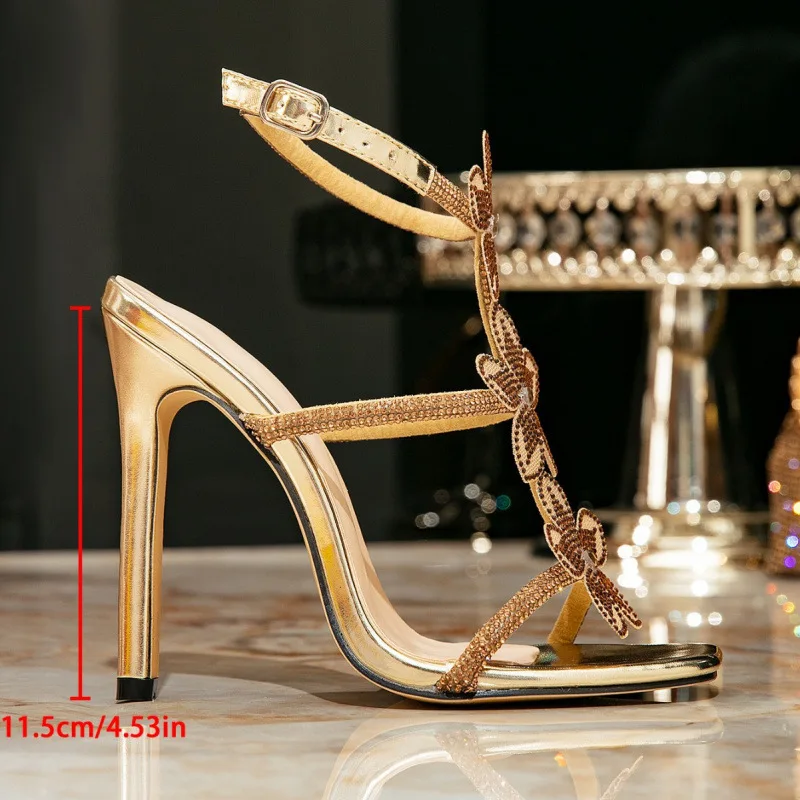 QuiteS New Flower High Heels Sparkling One-Strap Thin Heel Sandals Sexy Open-Toe Thin Heel Party Club Shoes for Women