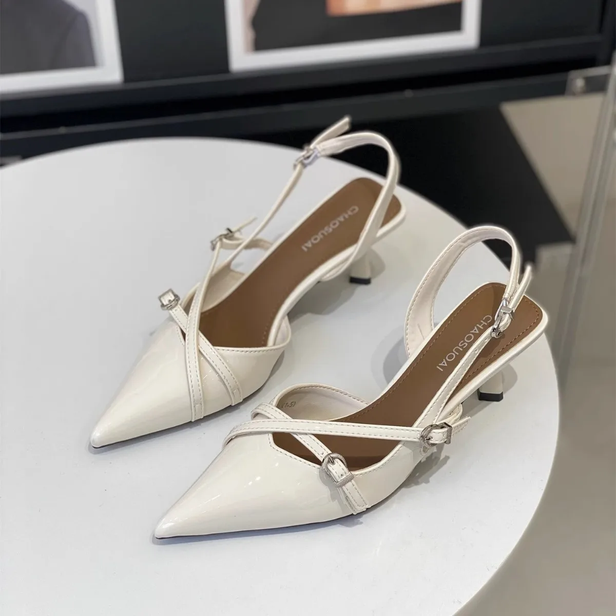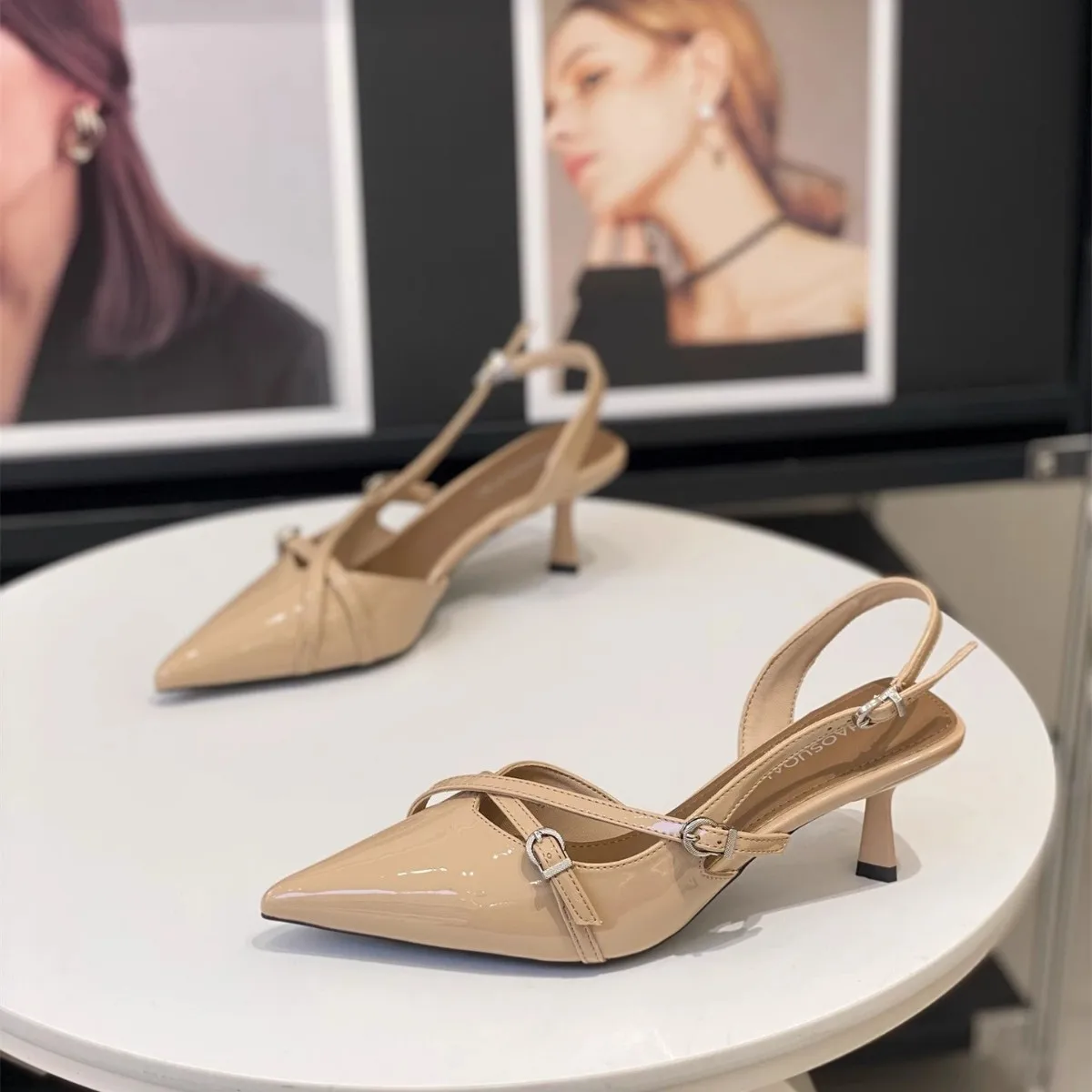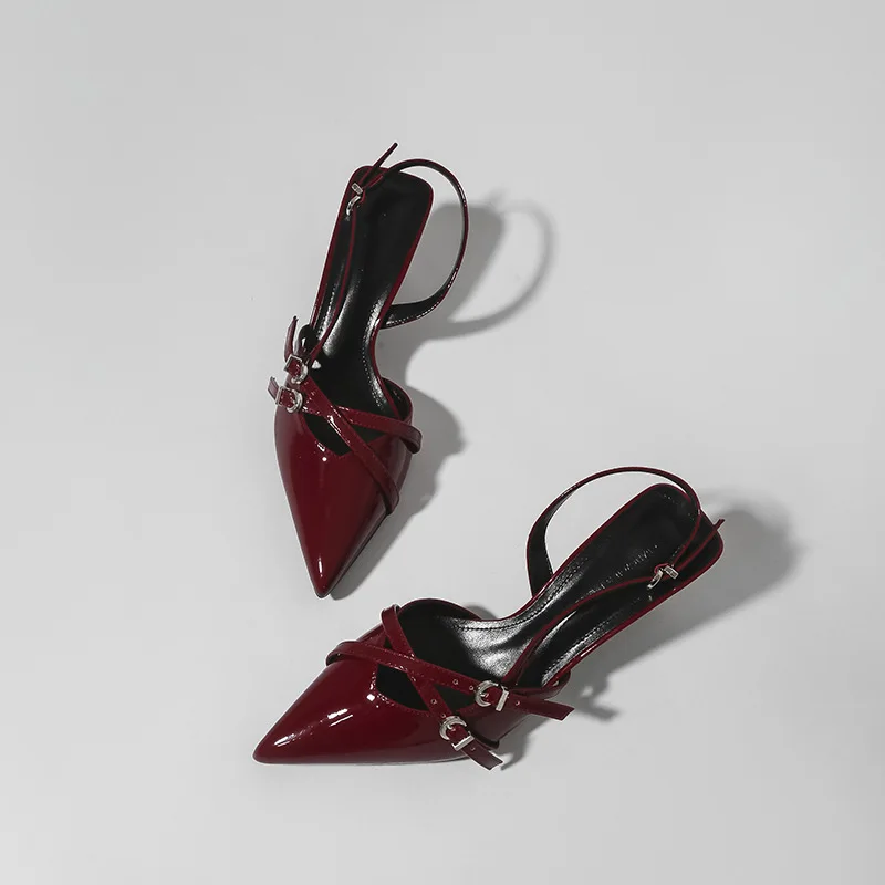 QuiteS 2026 Summer New Lace-up Patent Leather Sandals Versatile Pointed Toe Stiletto Heel Ankle Strap Sexy Shoes for Women