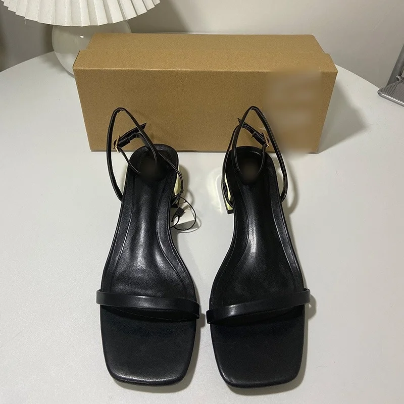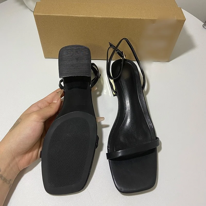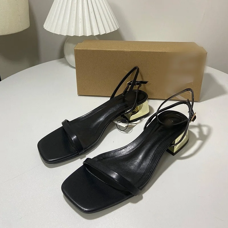 QuiteS New Summer Sexy Office Work Heels Casual Elegant Low Heel Women's Shoes Square Head Metal Thick Heel Buckle Sandals