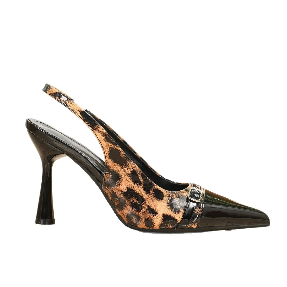 QuiteS 2026 New Open Back Pointed Toe Thin Heel High Heels Leopard Print PU Sandals Sexy Elegant Shoes for Women