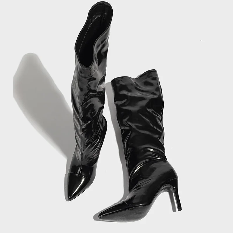 QuiteS 2026 Winter New Patent Leather Pointed Toe Slip-On Boots High Top Knee-High Sexy Shoes for Women