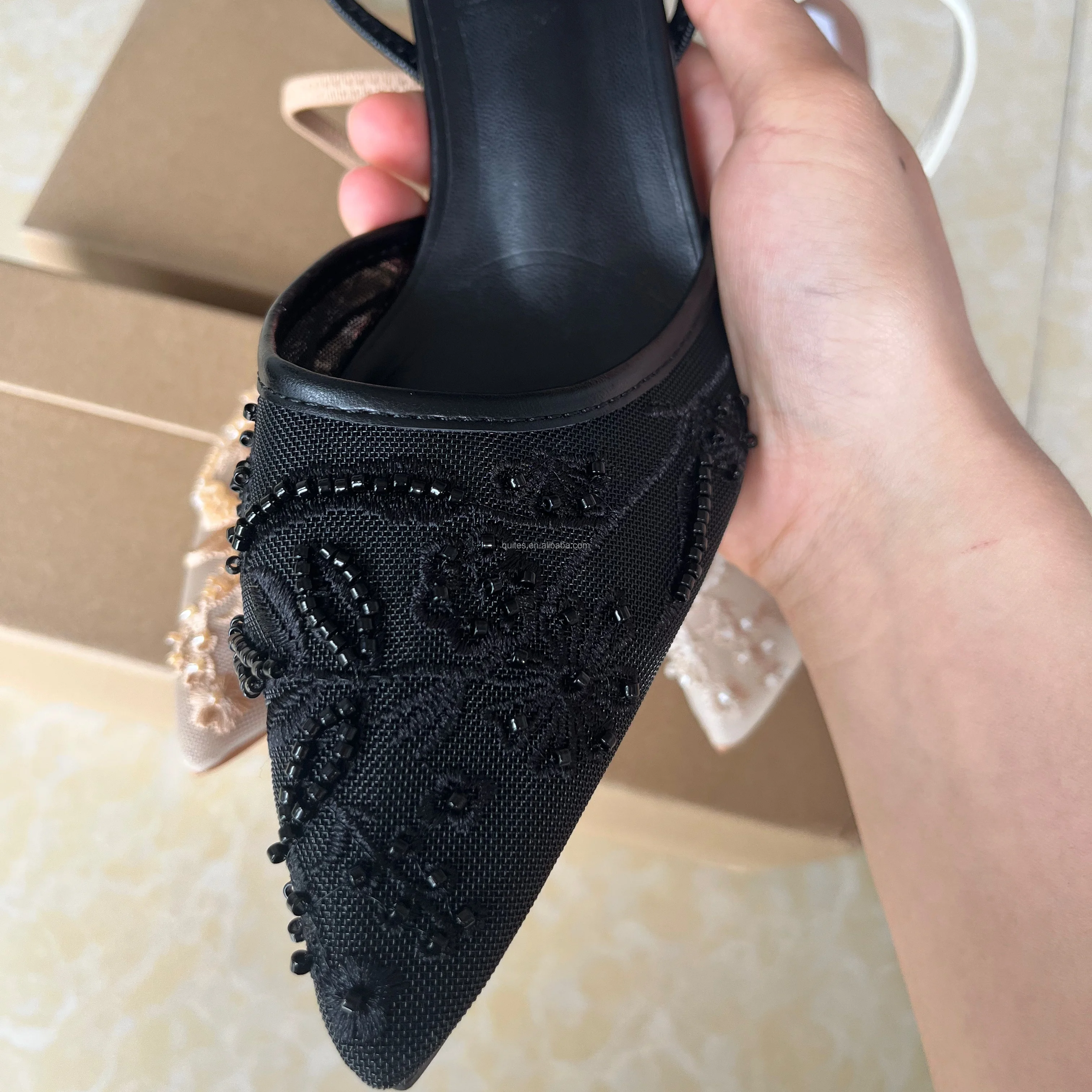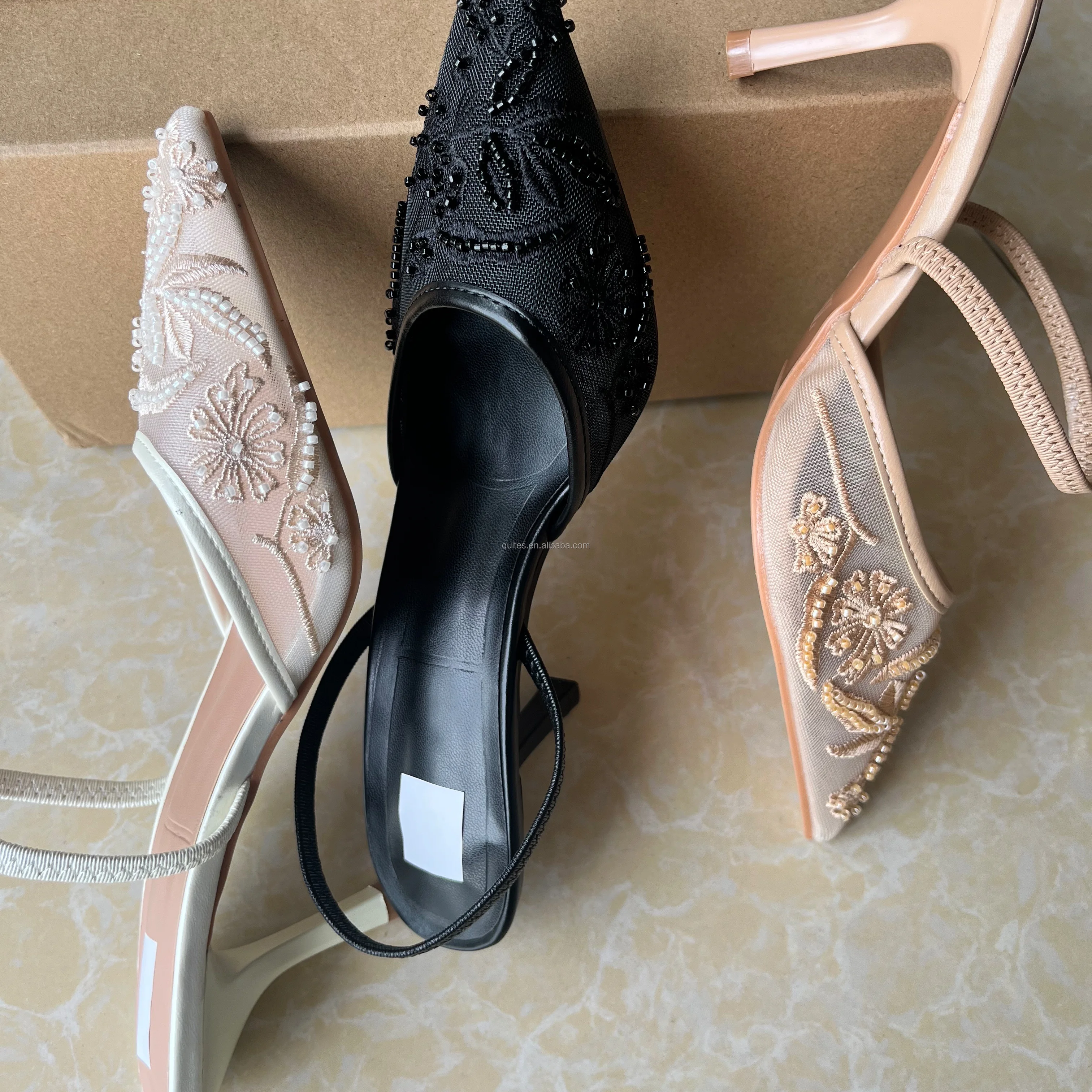 Women's Fashionable Summer Lace Plush Breathable Design Stiletto Heel Pointed Toe Trendy Styles Sold Directly Source Factory