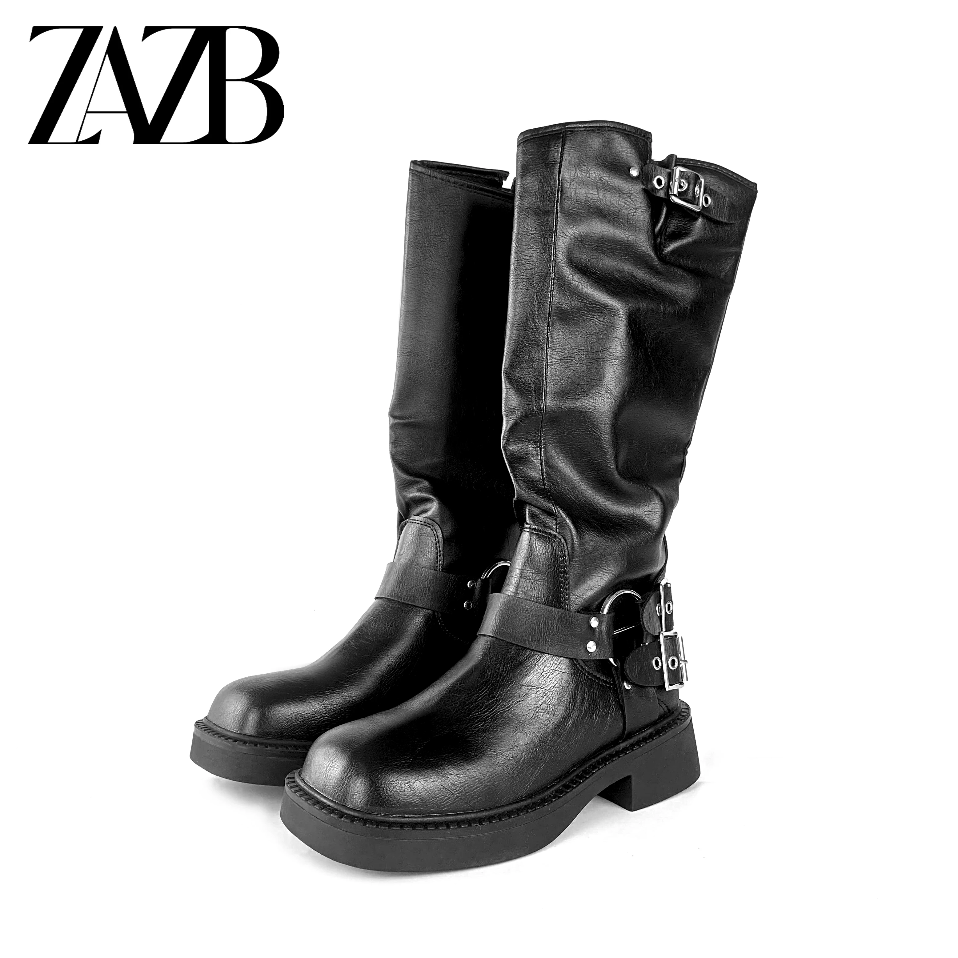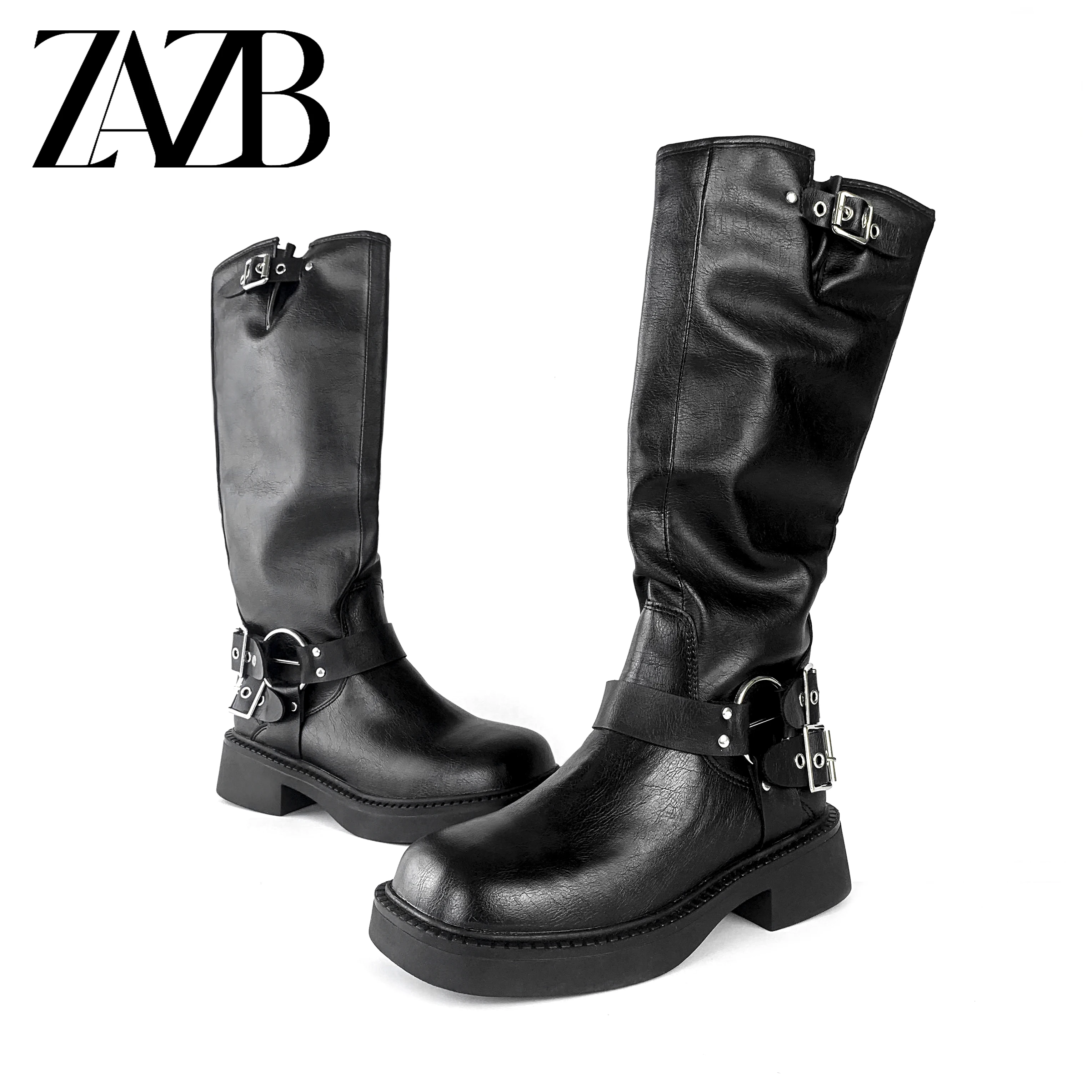 ZAZB Custom Women Shoelaces Solid Color Designer Shoes High Heels Leather Boots Women Genuine Leather Leathers Luxury Platform