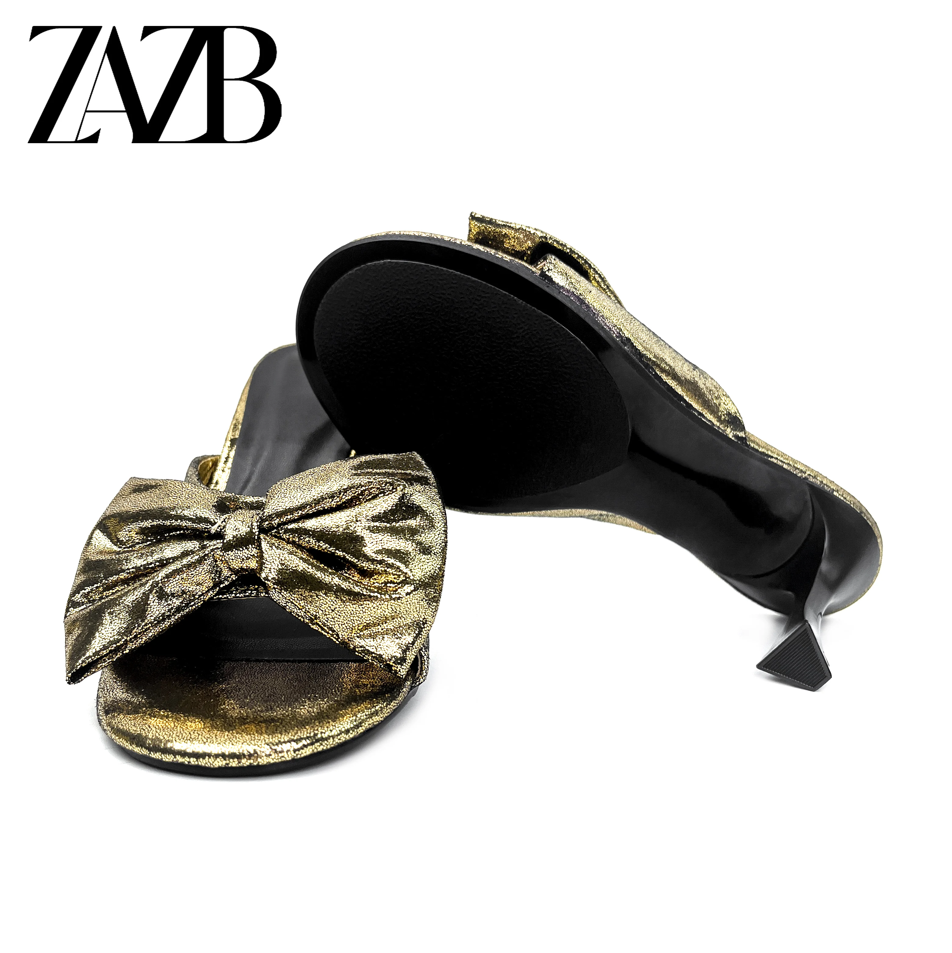 ZAZB Fashion Customized Designer Shoes Women's Bow High Heel Slippers Luxury Slippers Women's