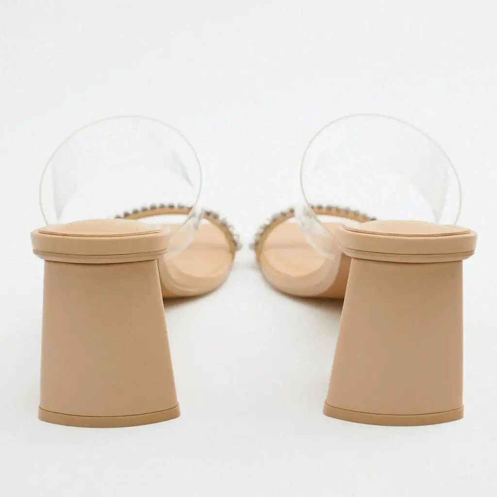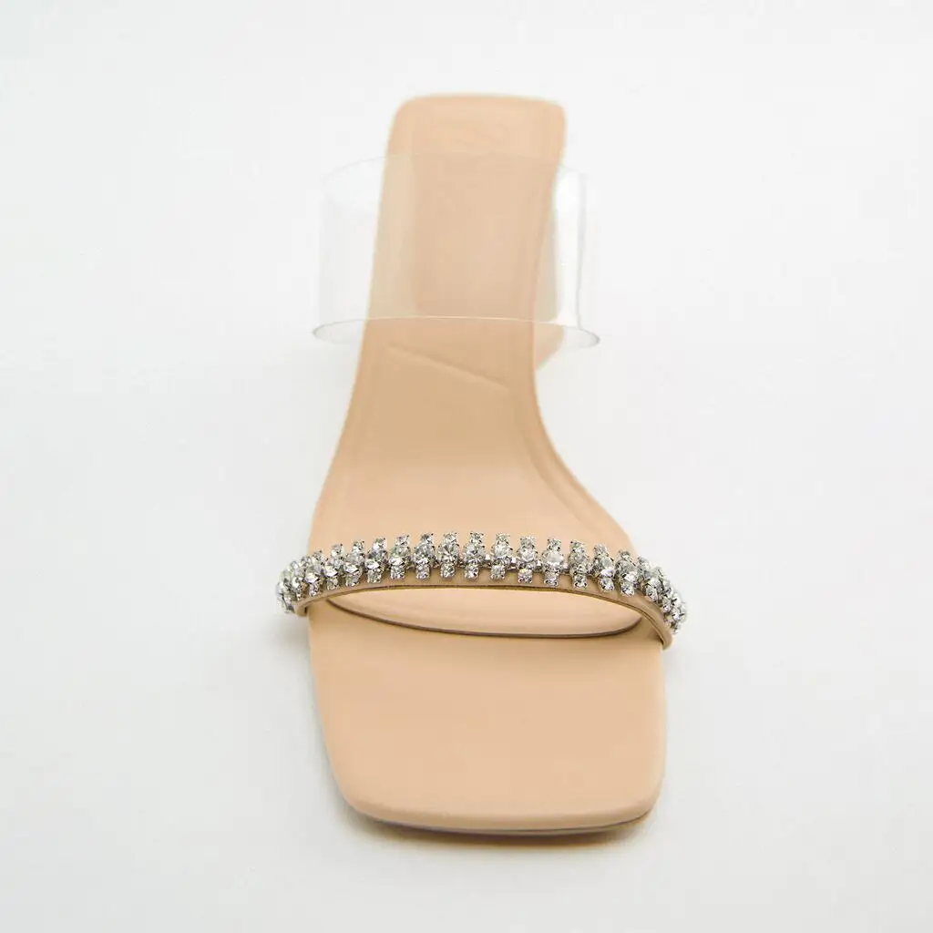 Custom square Rhinestone Transparent Designer Shoes Sandal for Women and Ladies High Heeled Shoes Luxury slippers Femmes Fashion