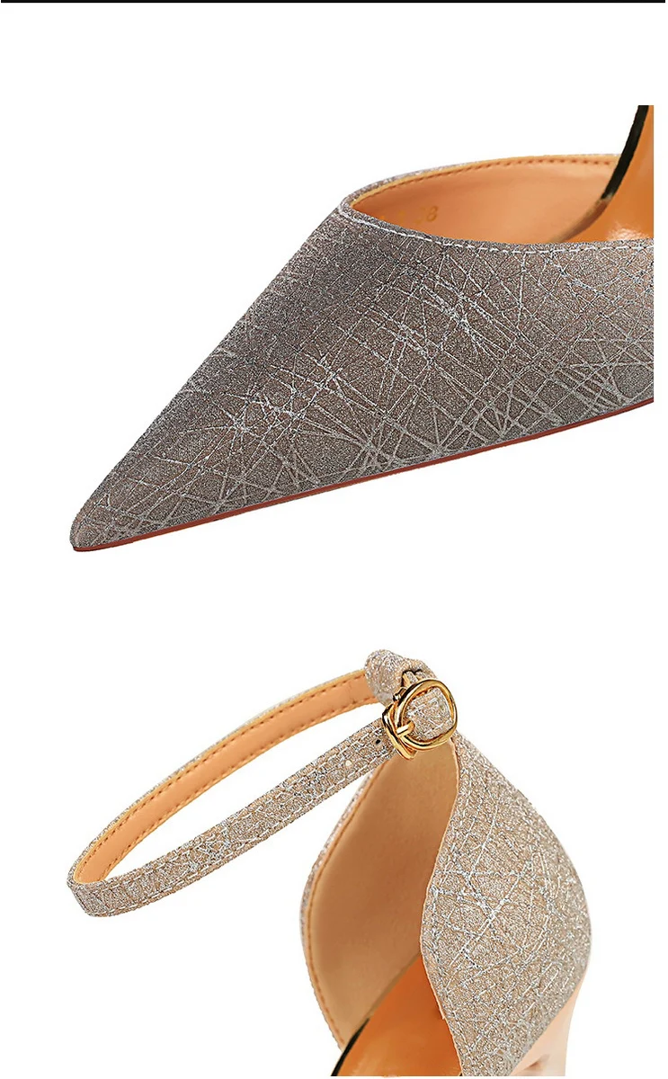 Silvery Bridal Pointed Head Women High Heel Shoes Dress Ladies Formal Designer Famous Brands Button Office Stiletto Heels Sandal
