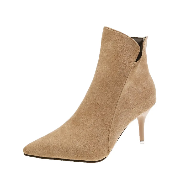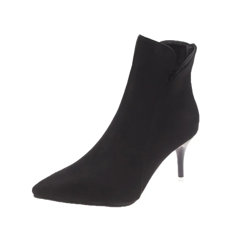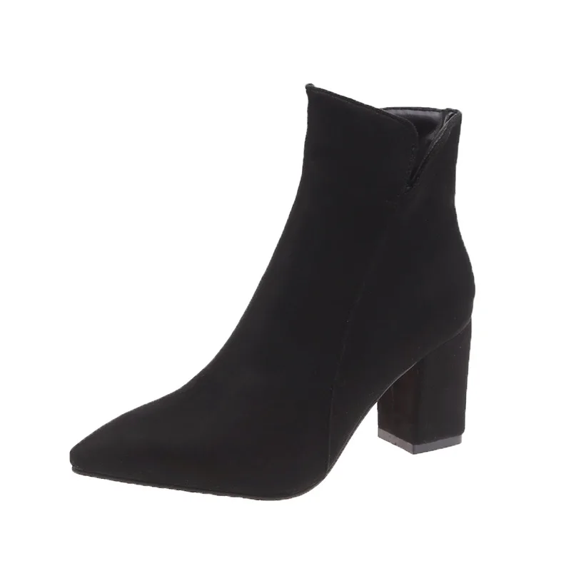 Winter Ladies British Wind Women Middle Cylinder Short Boots Chunky Heel Thick Bottom Black Platform V-type Suede Ankle Shoes