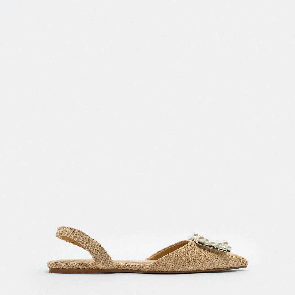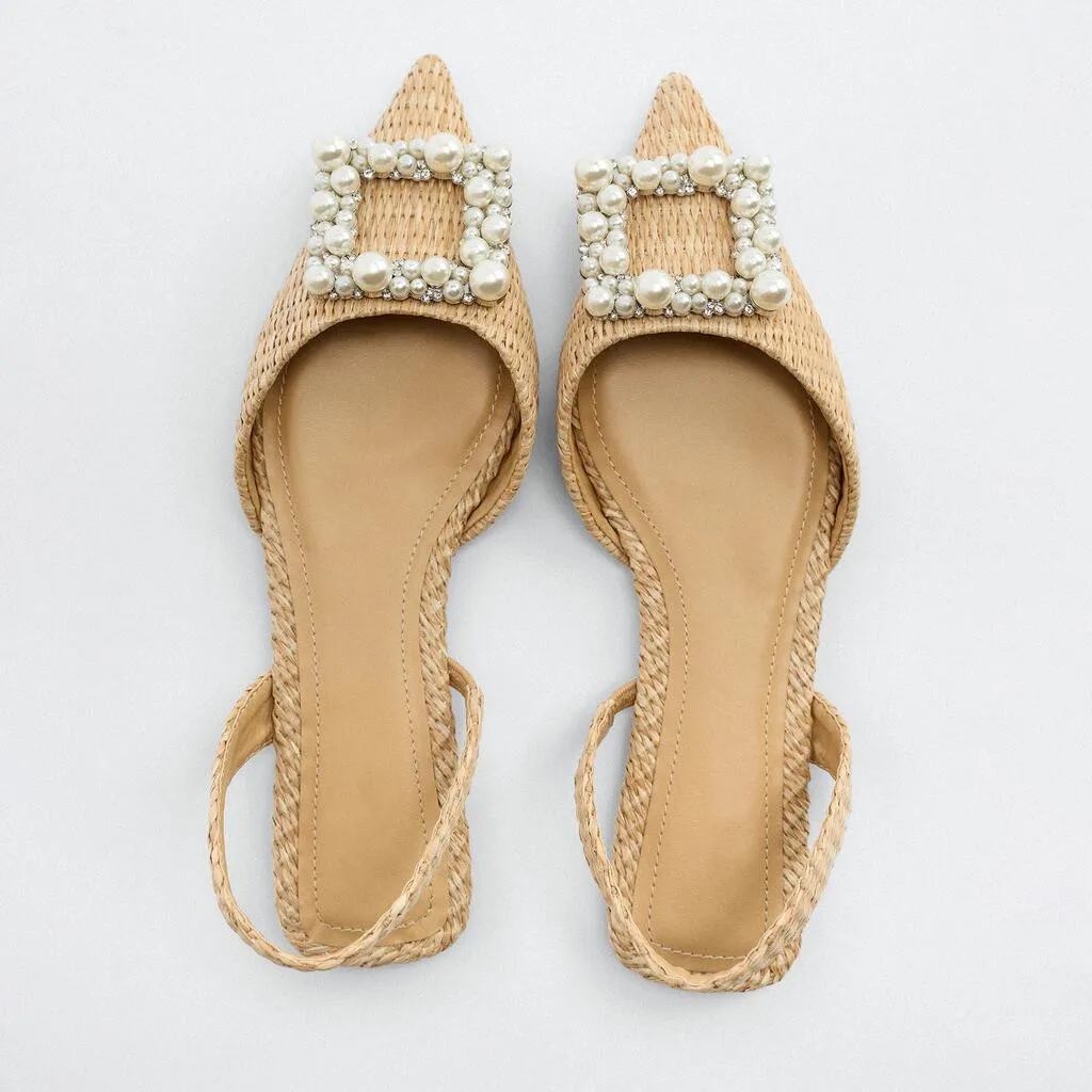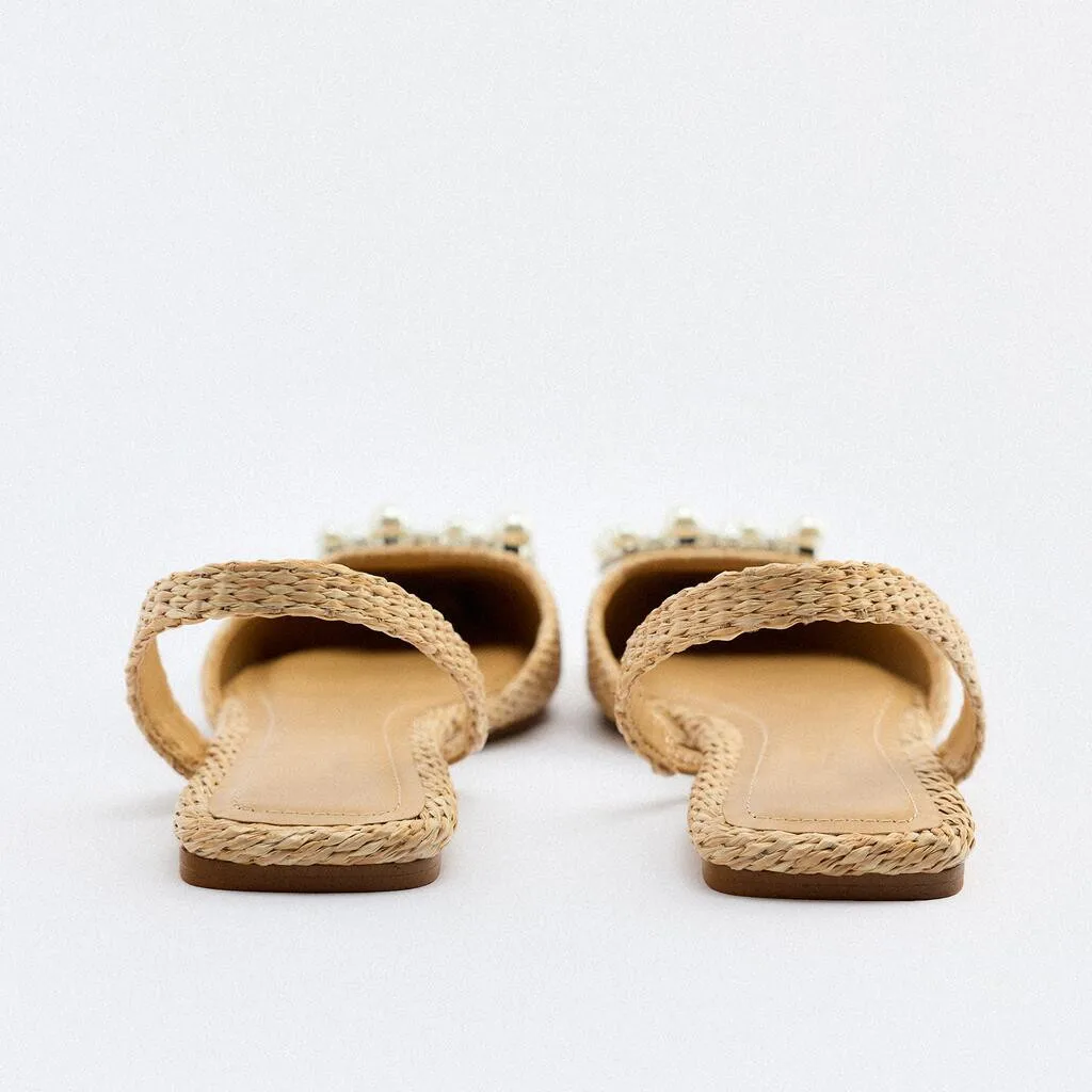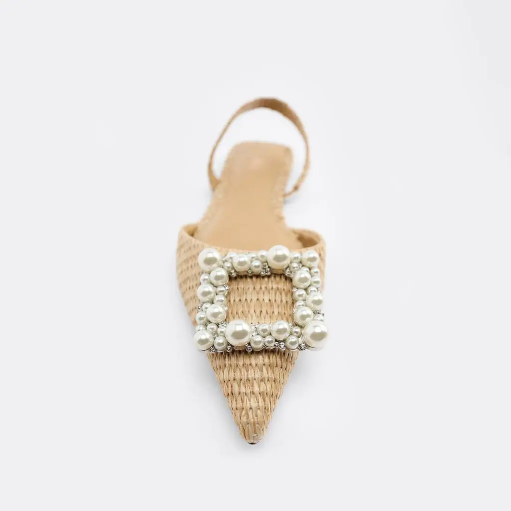 Custom Pointed Head Pearl Designer Shoes Sandals for Women and Ladies Flat Shoes Luxury slippers Femmes Fashion