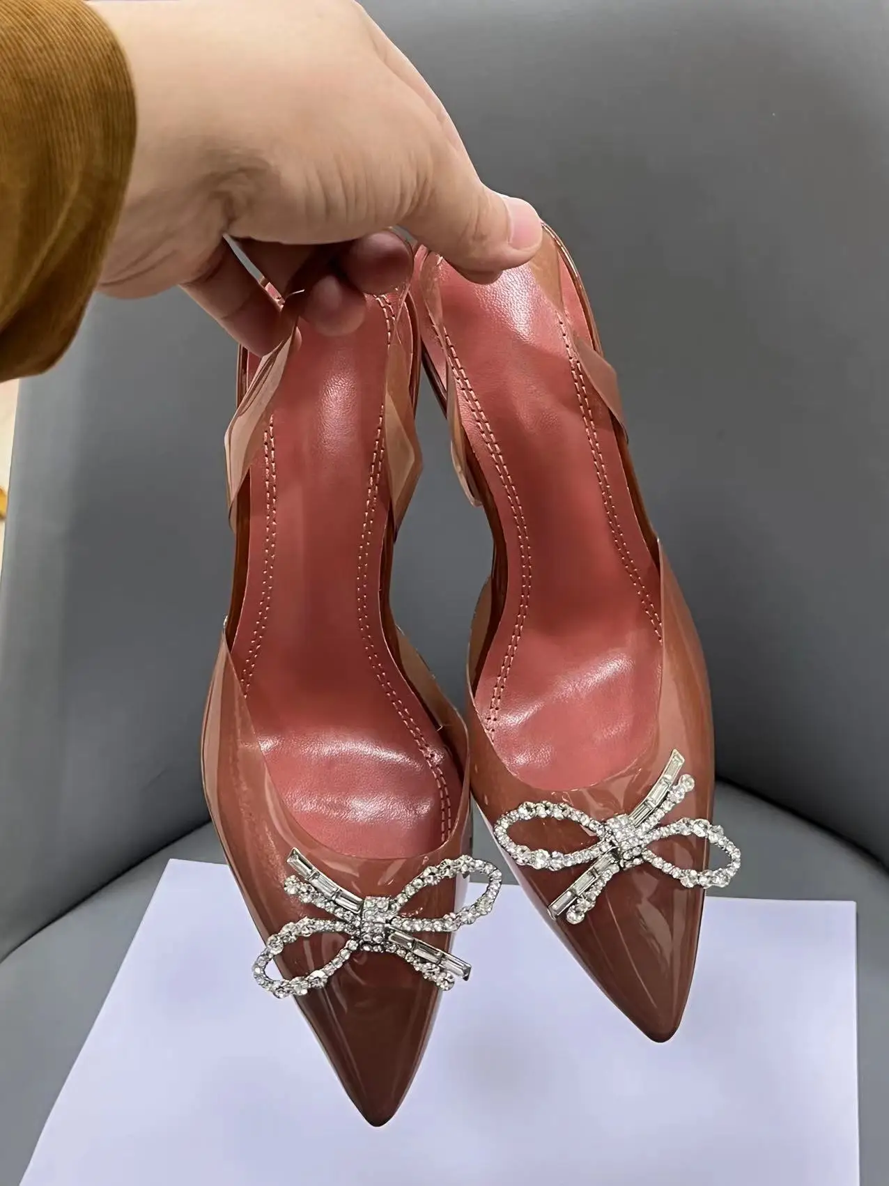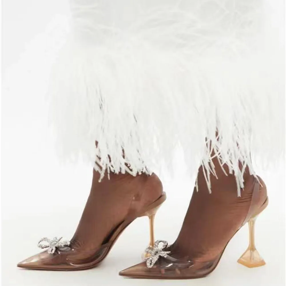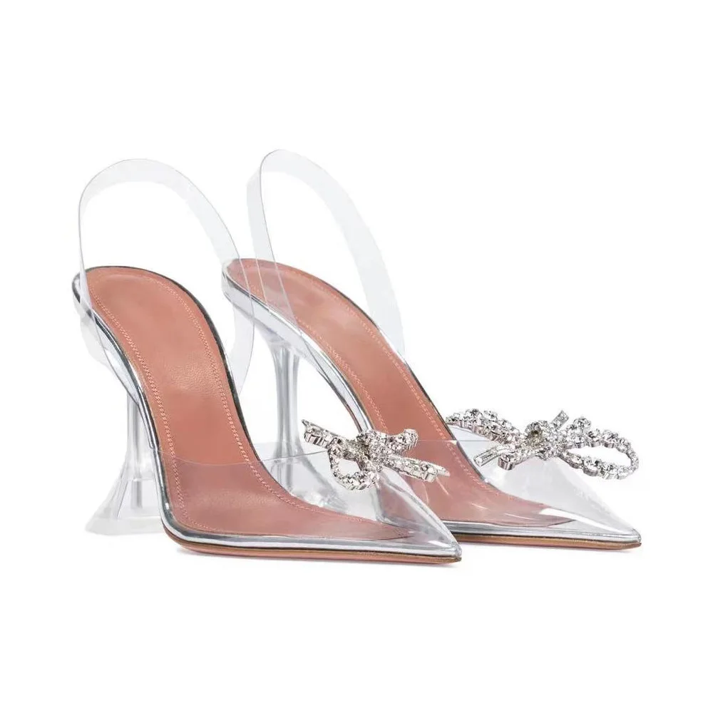 Bowknot Wedding Luxury Dress Bridal Pointed End Ladies High Heel Shoes Women Sandal Office Stiletto Rhinestone Heels Designer