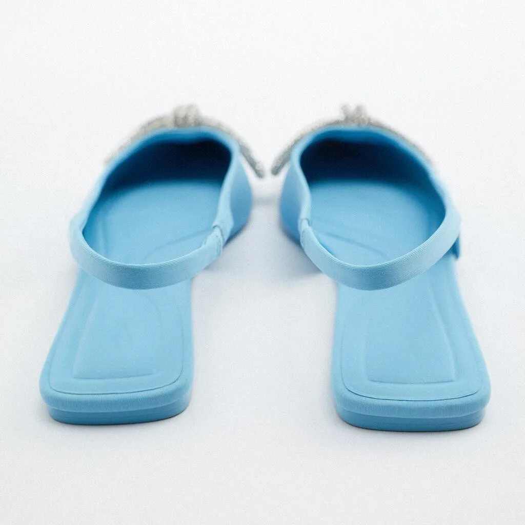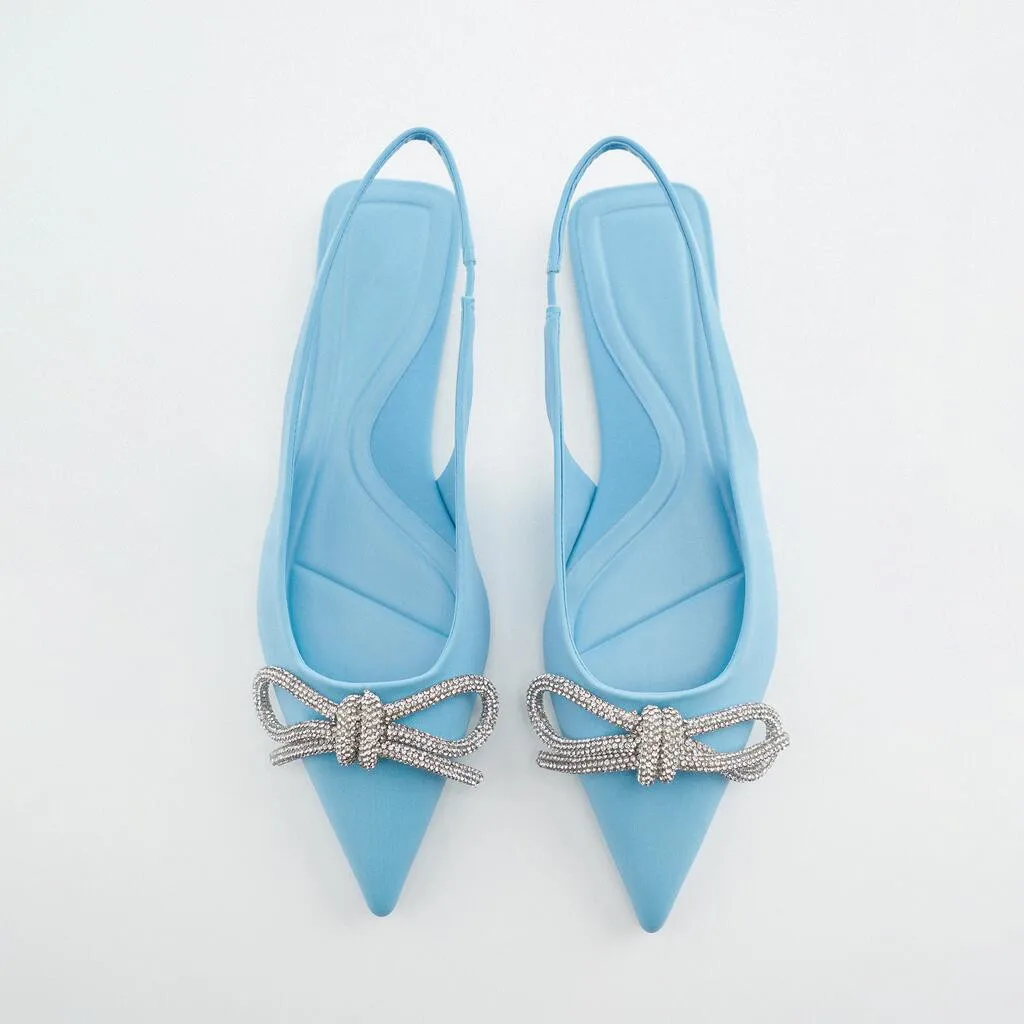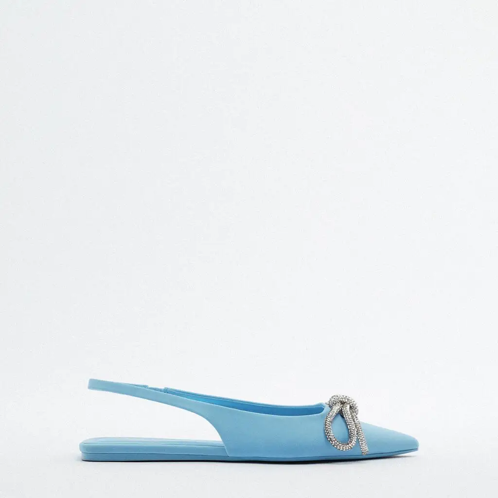 Custom Luxury Rhinestone Bow Pointed Head Designer Shoes Sandal for Women and Ladies Flat Slipper Shoes Femmes Fashion