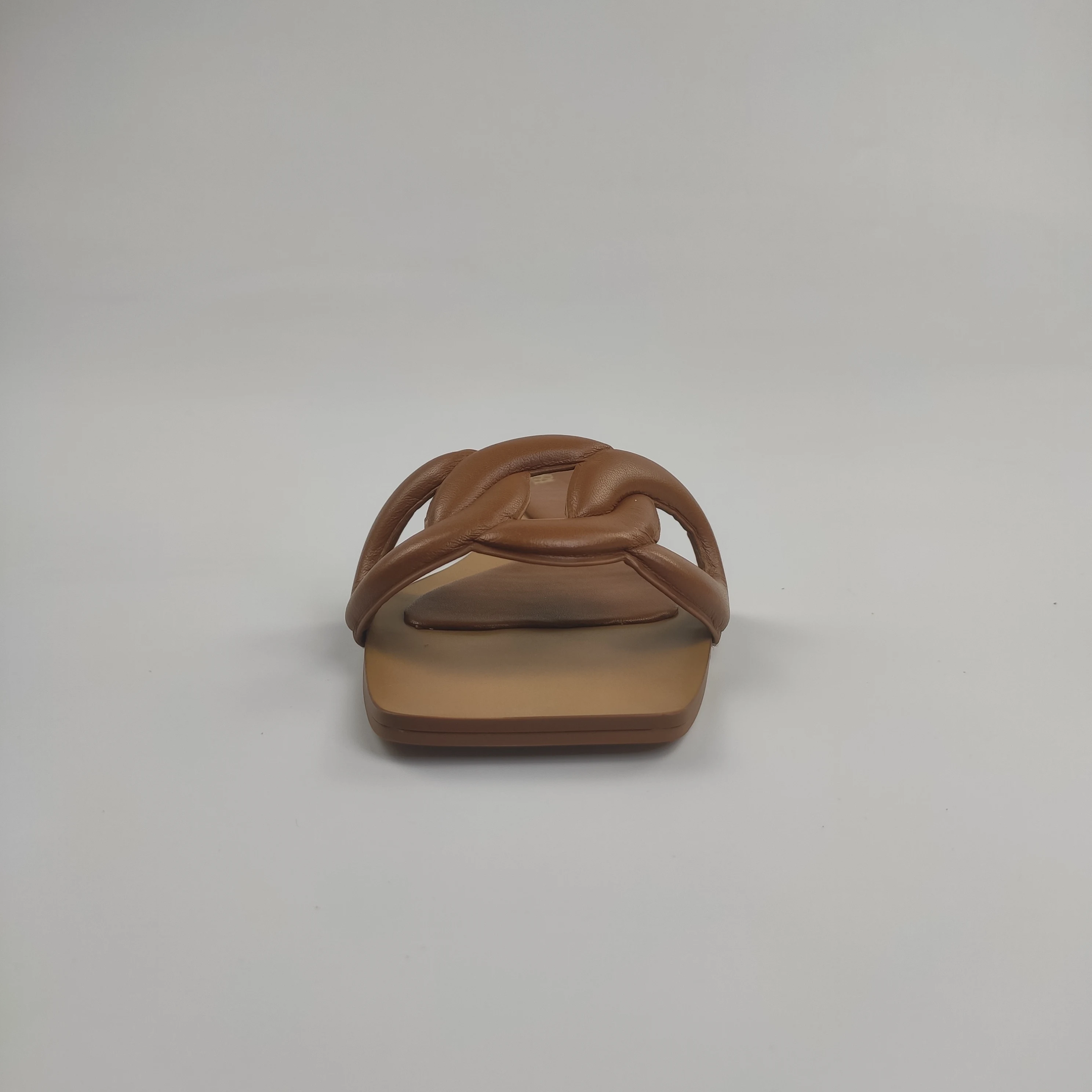 Custom Circle Buckle Leather square Designer Shoes Sandals for Women and Ladies Flat Shoes Luxury slippers Femmes Fashion