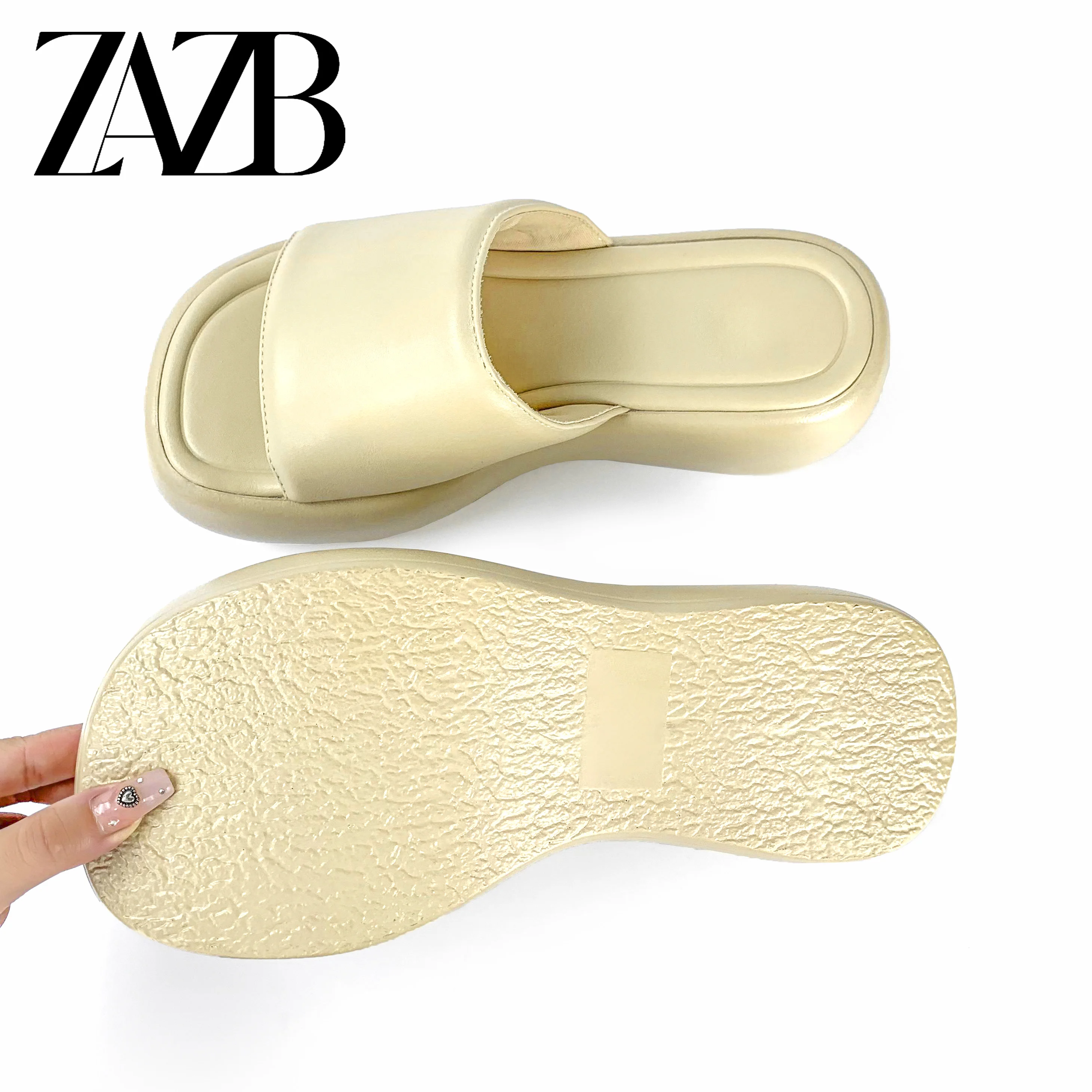 ZAZB New Summer Customized Women's High Heel Thick Sole Slippers Round Toe Open Toe Women's Thick Heel Sandals