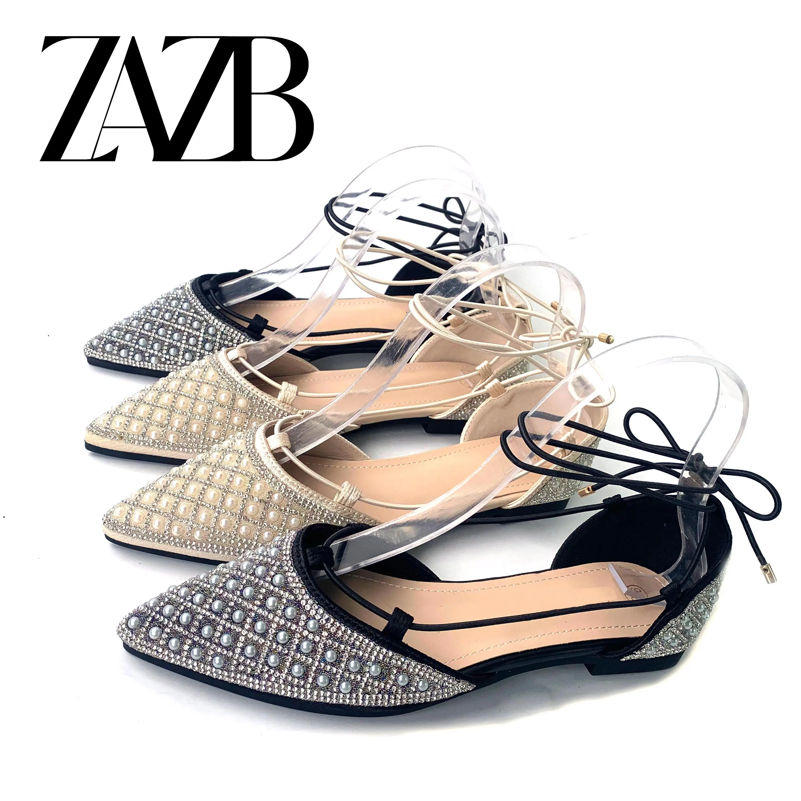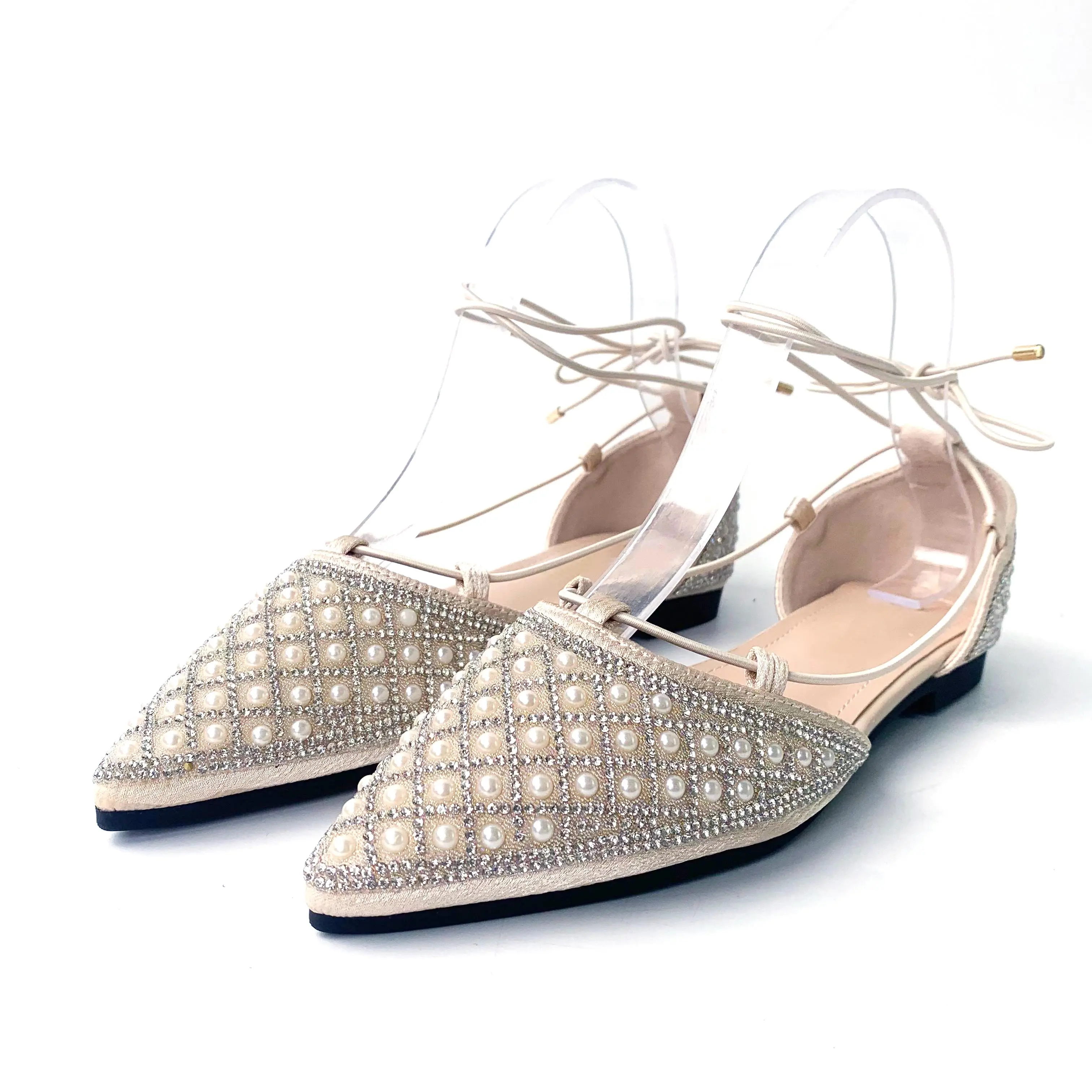 Custom Diamond Pointed Head Sandals for Women Ladies Flat Comfortable Loafers Leather Shoes Ladies Fashion Beach slippers
