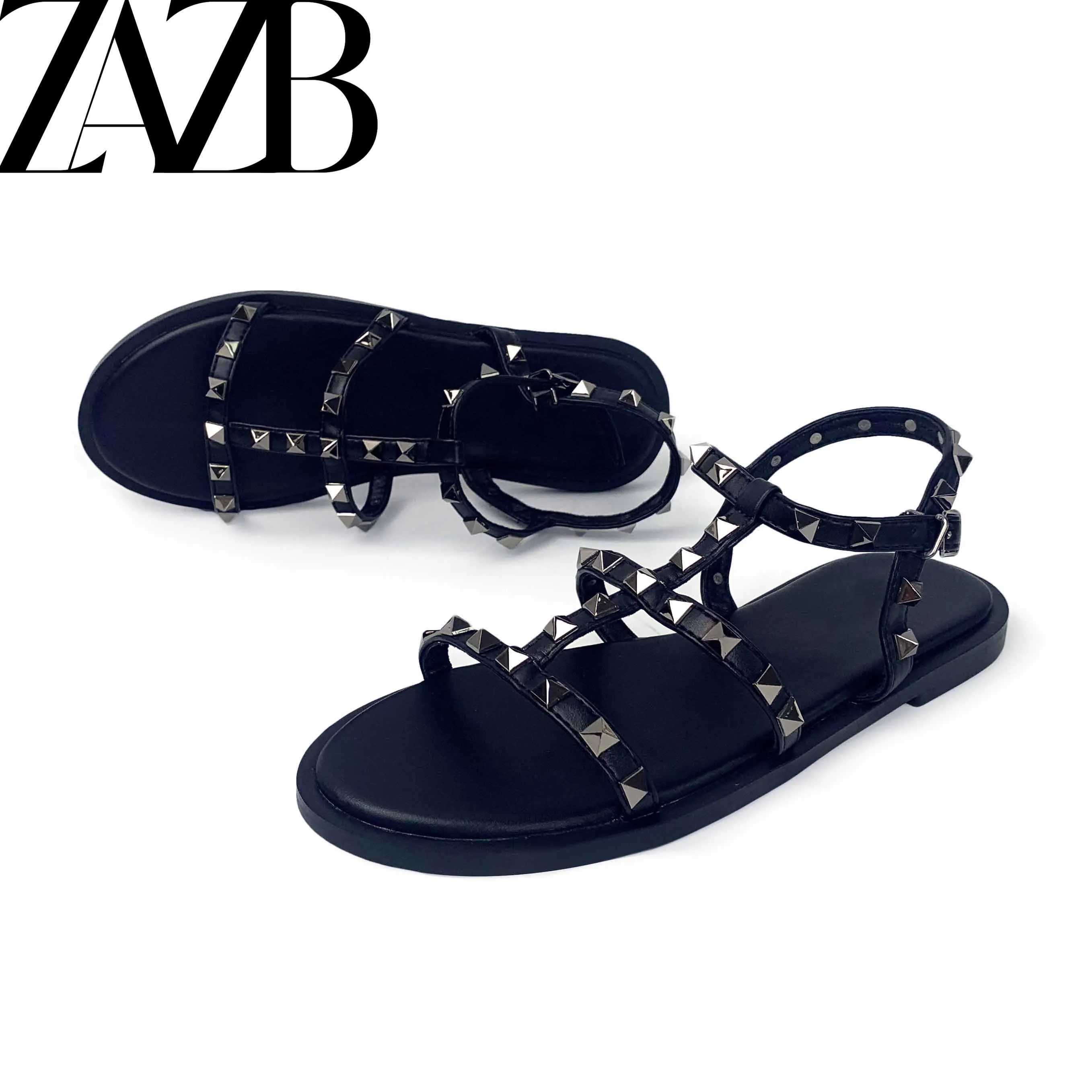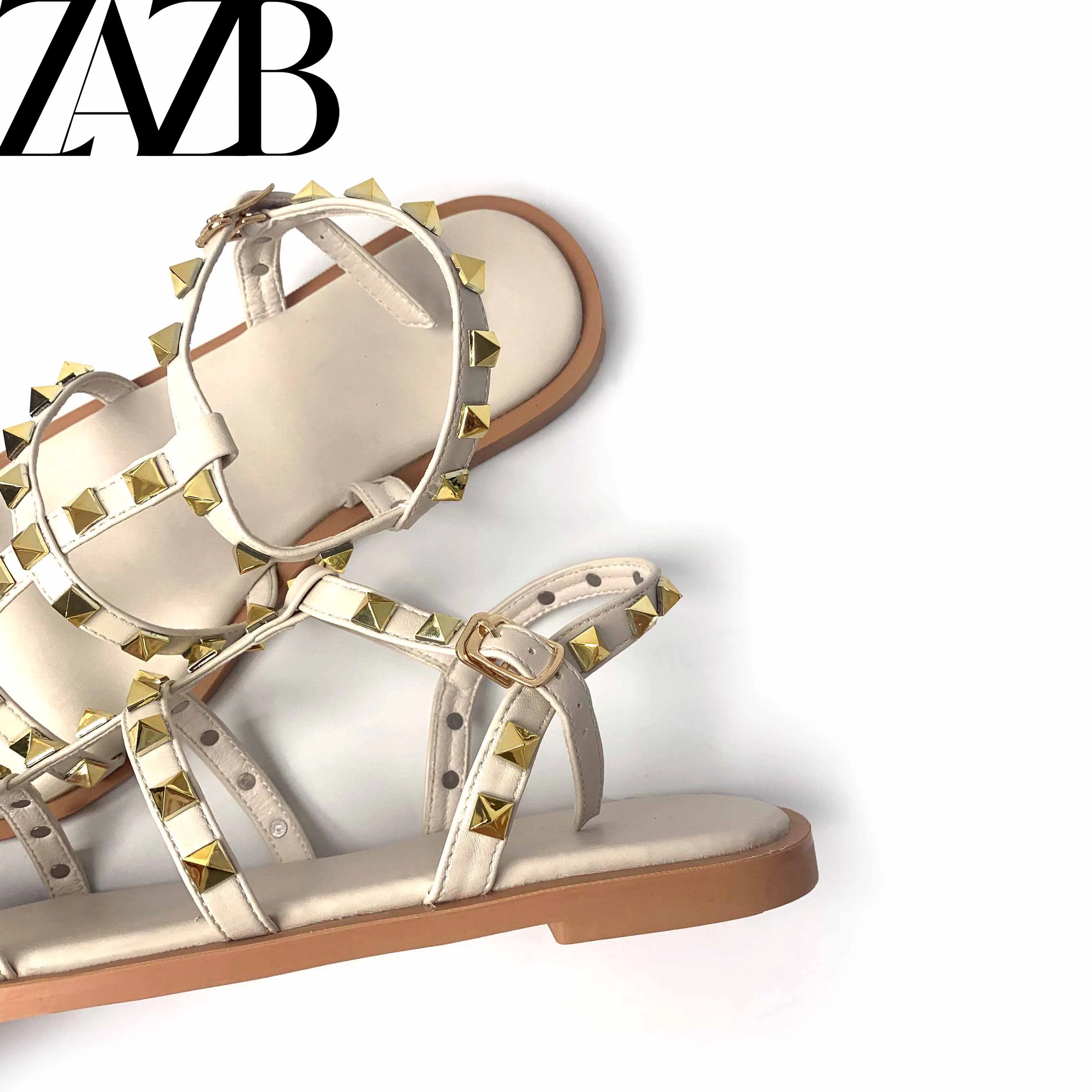 Gold Metal Buckle Clip Toe Cool Slippers, Women's New Casual Open Toe Flats for Outdoor Wear in Summer
