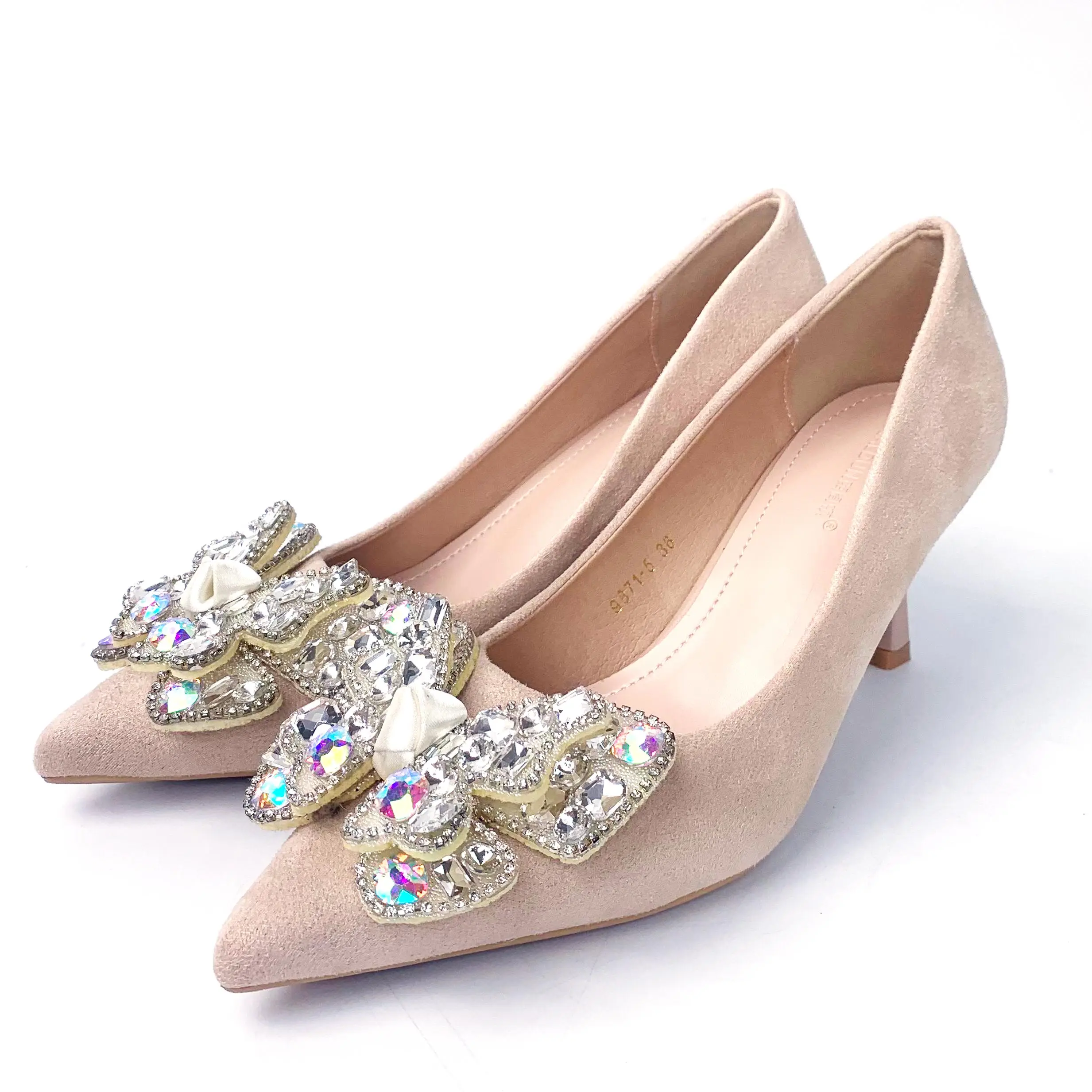 Custom Shiny Bow Pointed Head Rhinestone Designer Shoes Sandals for Women and Ladies High Heeled Shoes Luxury Femmes Fashion