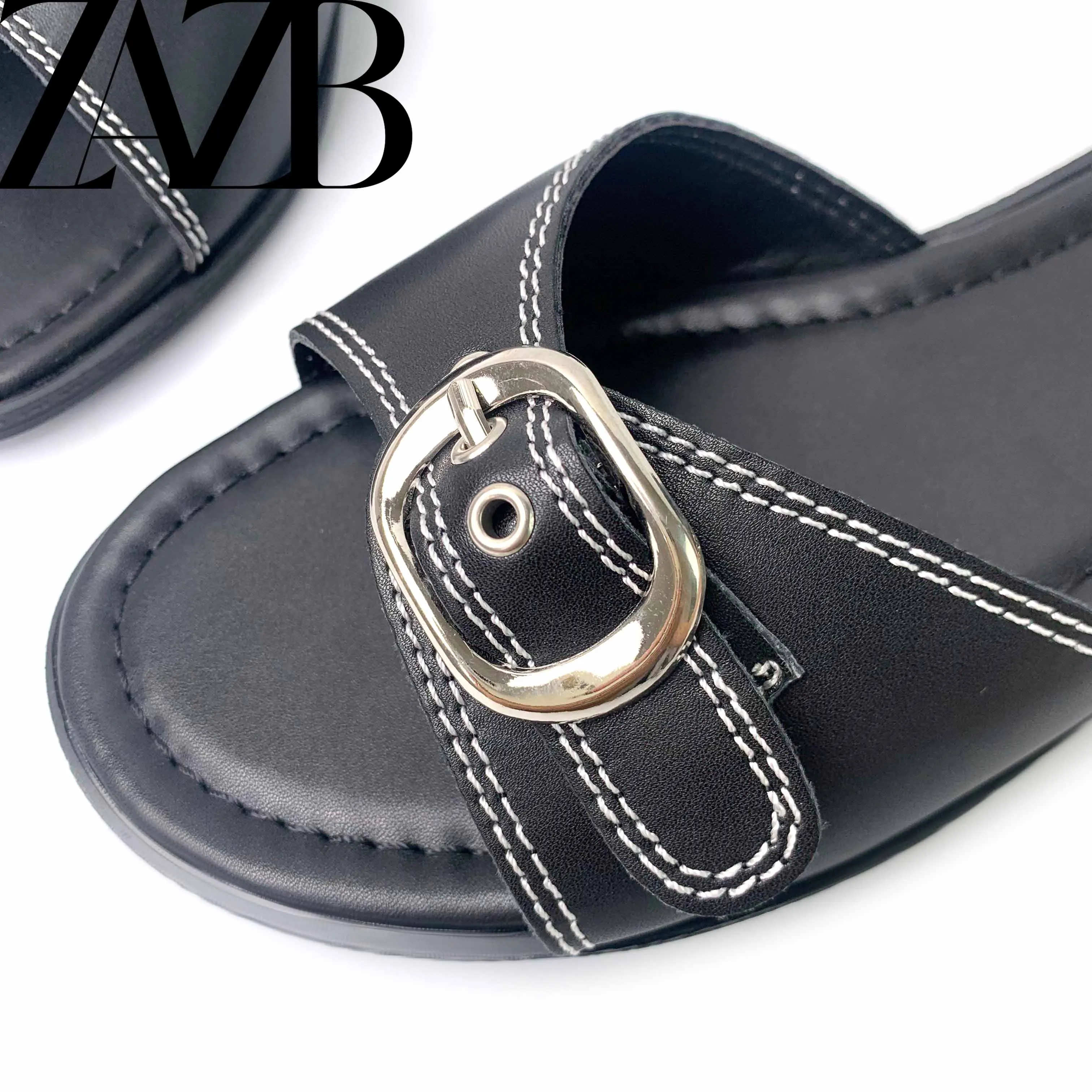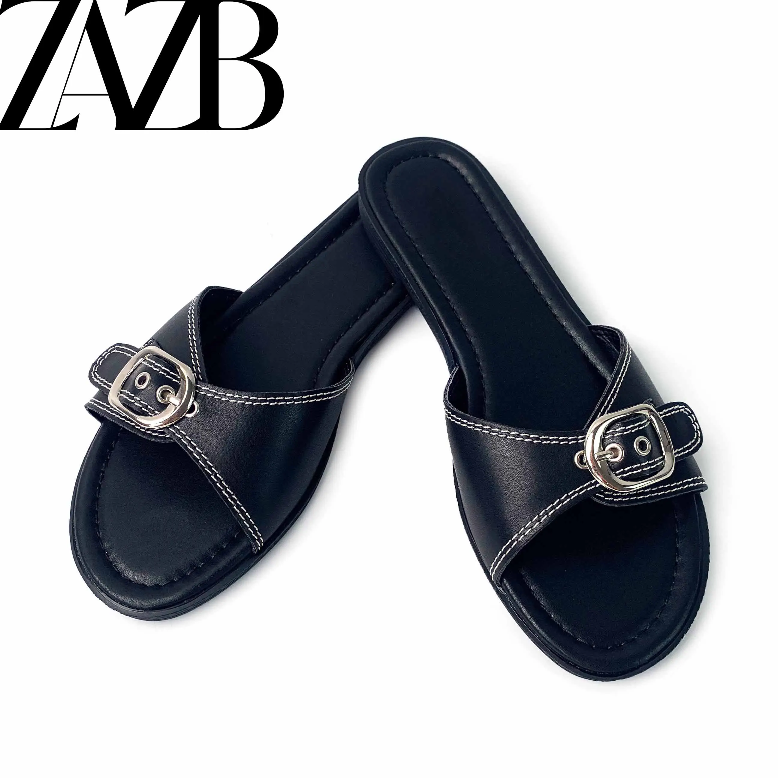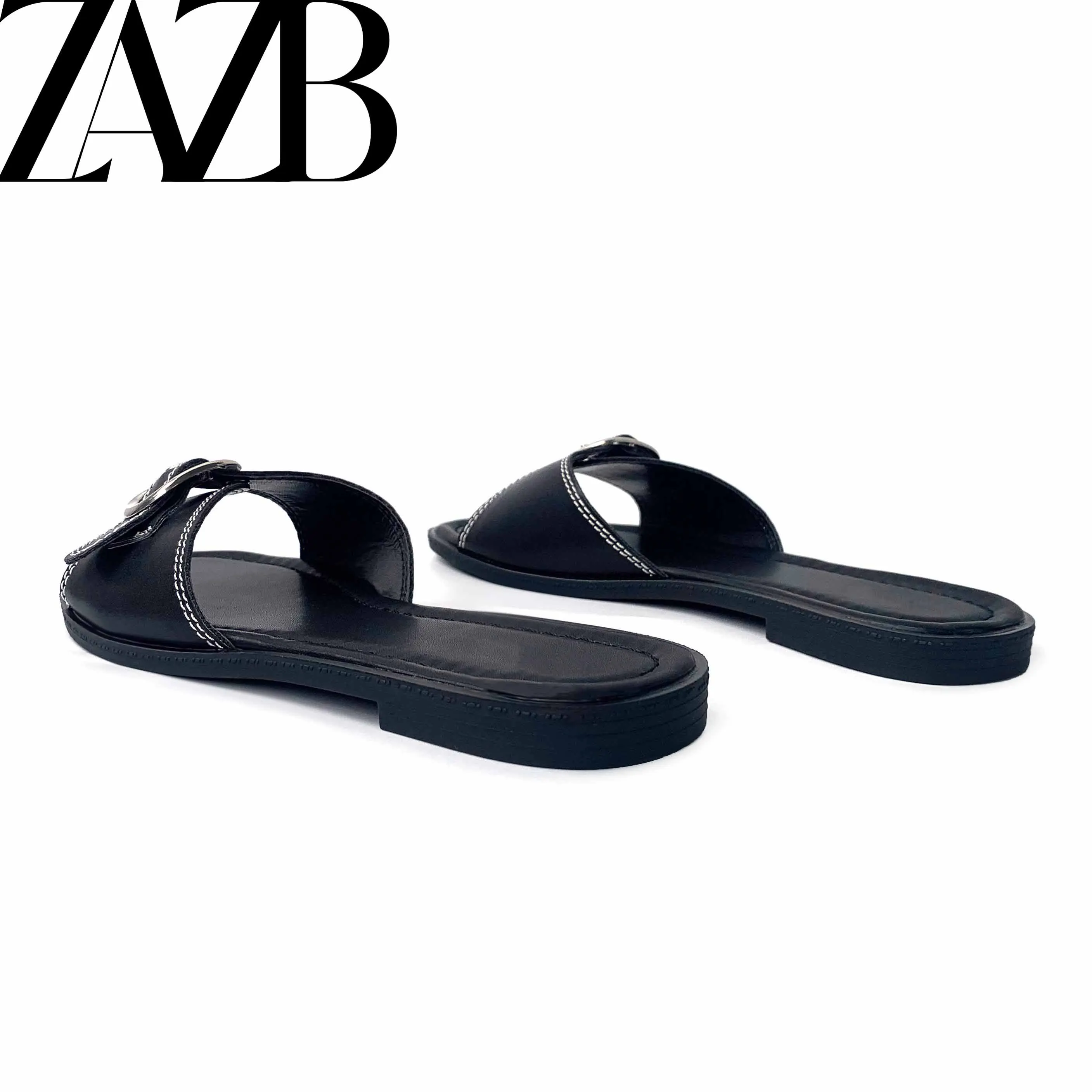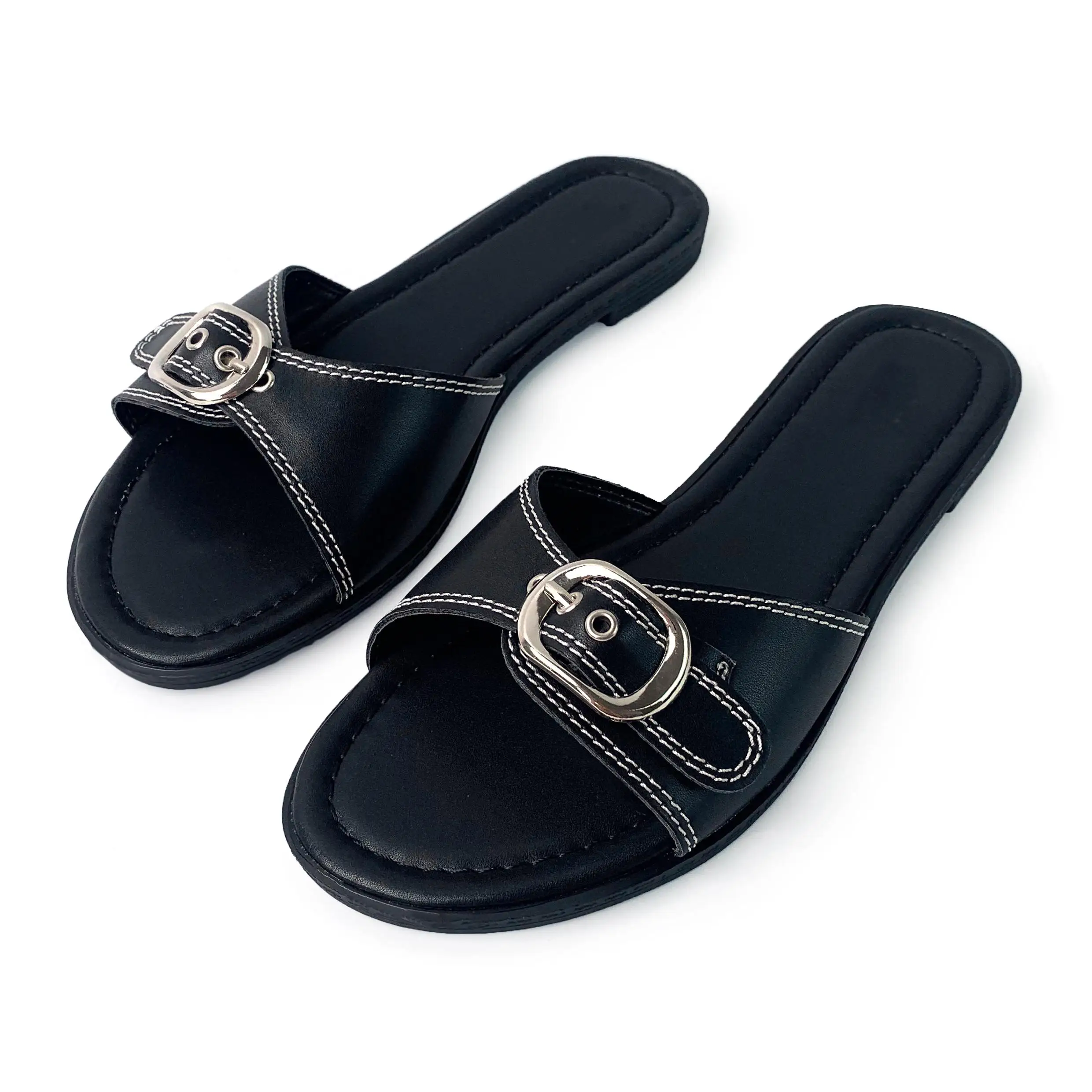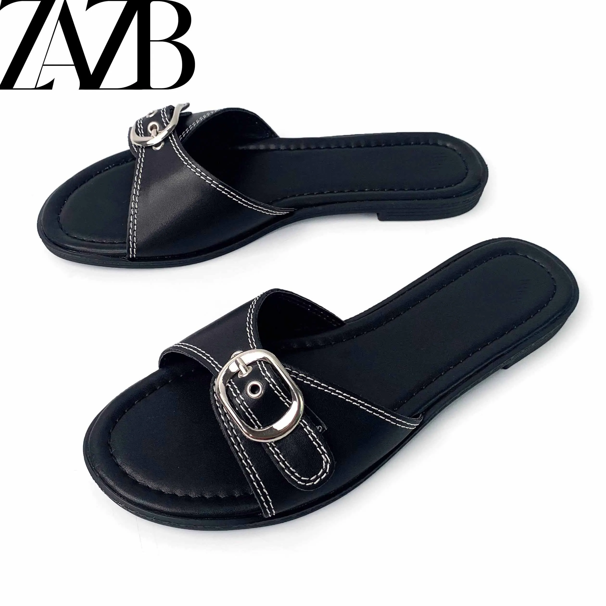 2021 New Wholesale Summer square Head Clip Foot European and American Open Toe Woven Flat Shoes Black Women's slippers Sandals