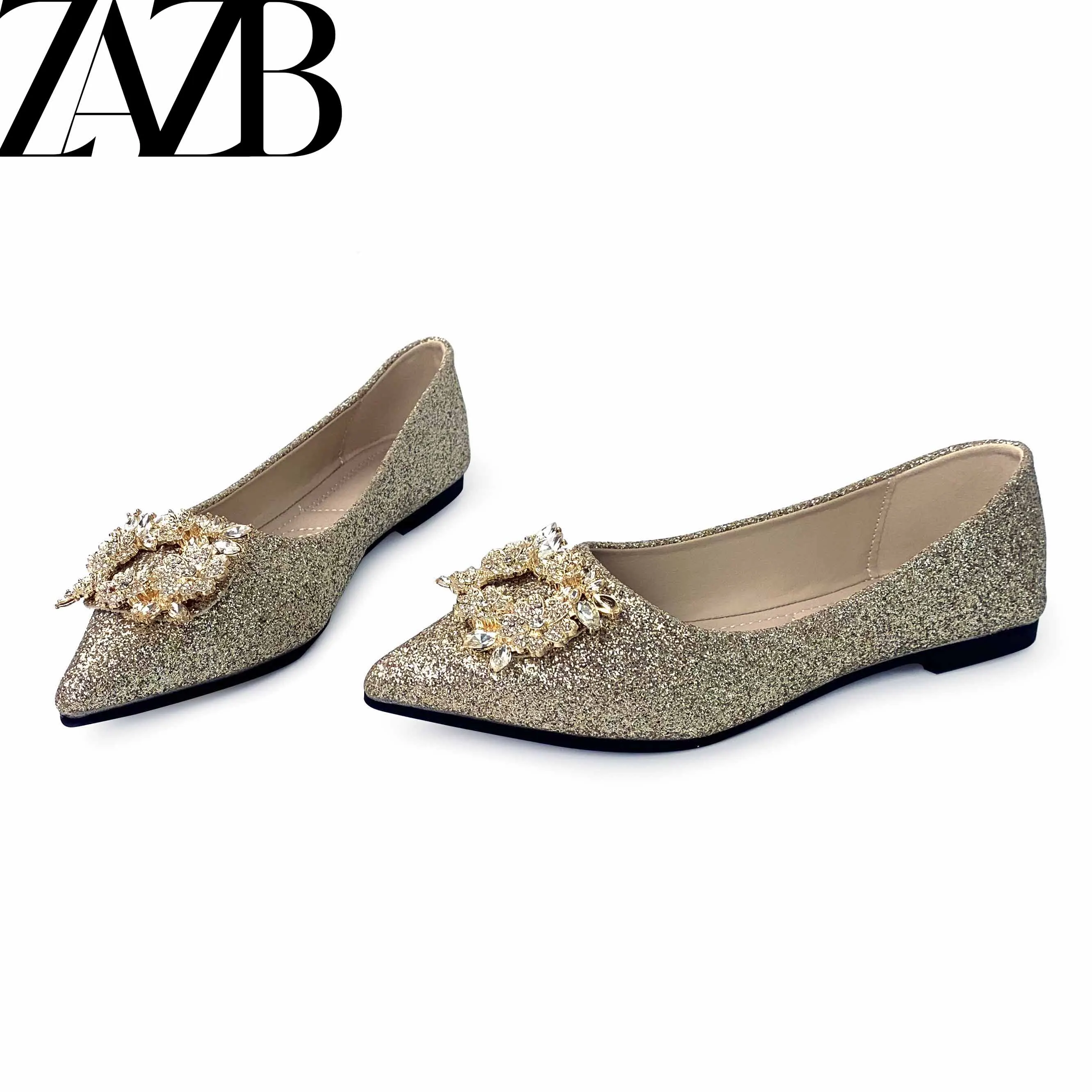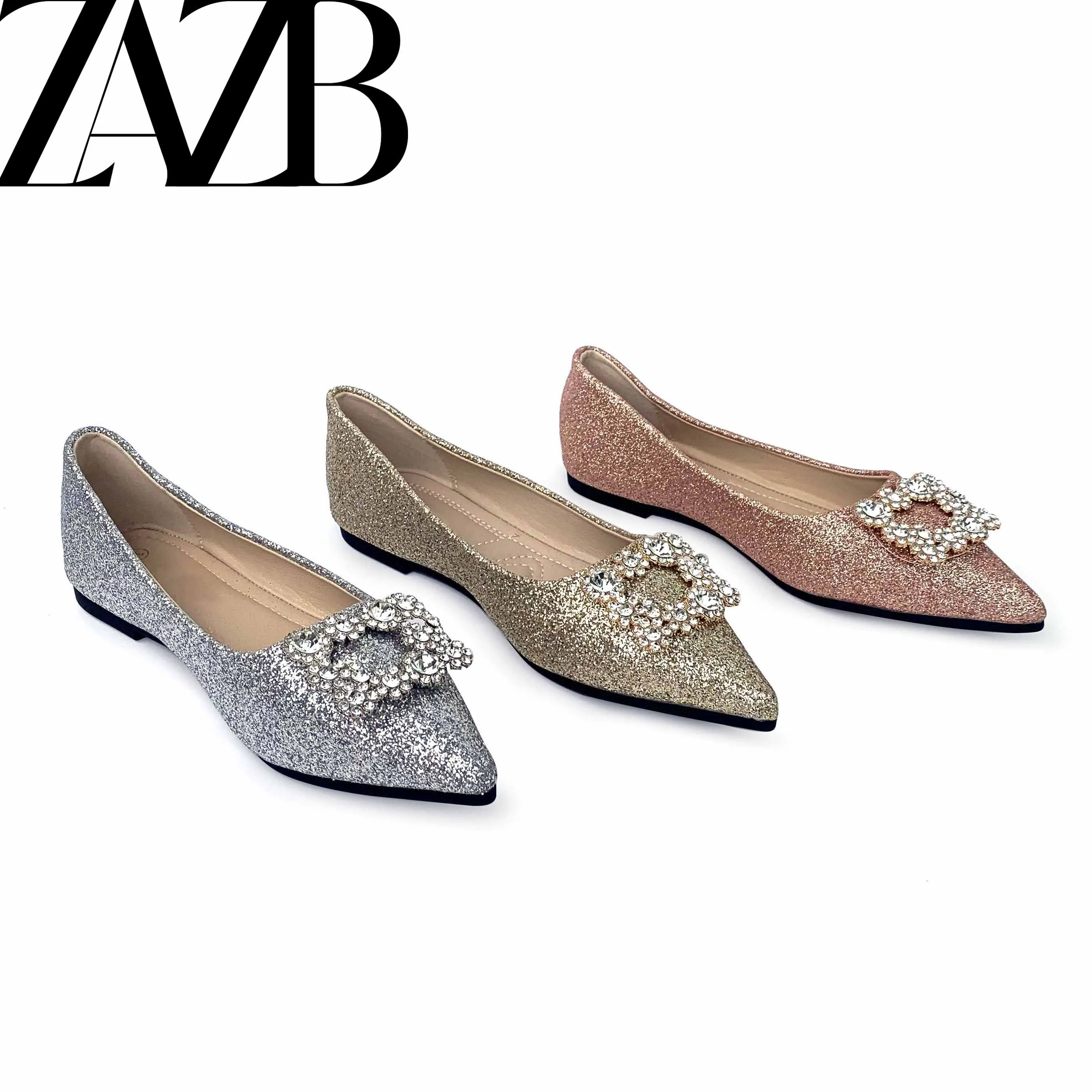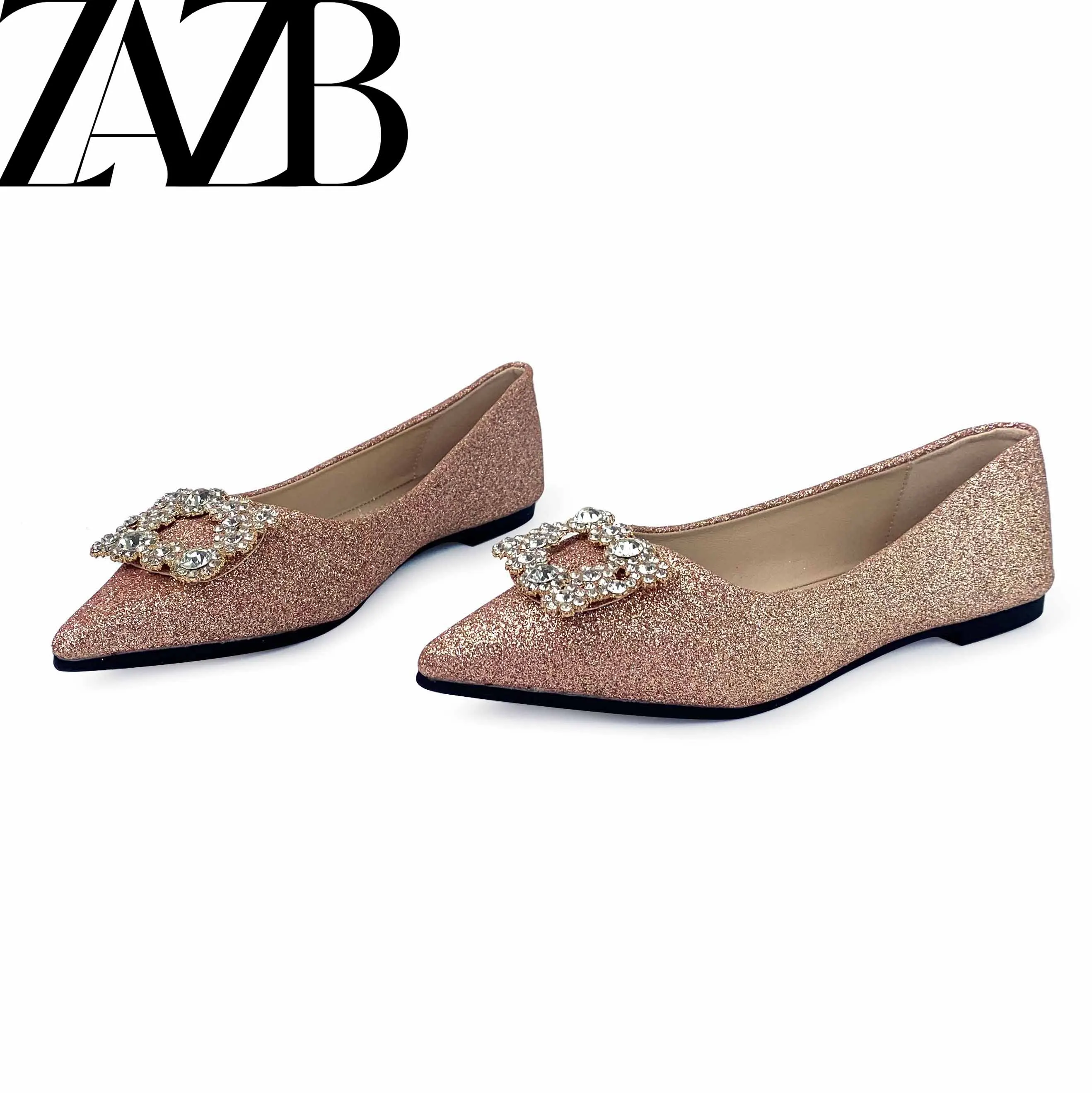 Pearl Pointed Head Shiny Rhinestone Women's Flats Formal Office Ladies Flat Shoes Casual slip on Slipper Loafers Summer Sandals